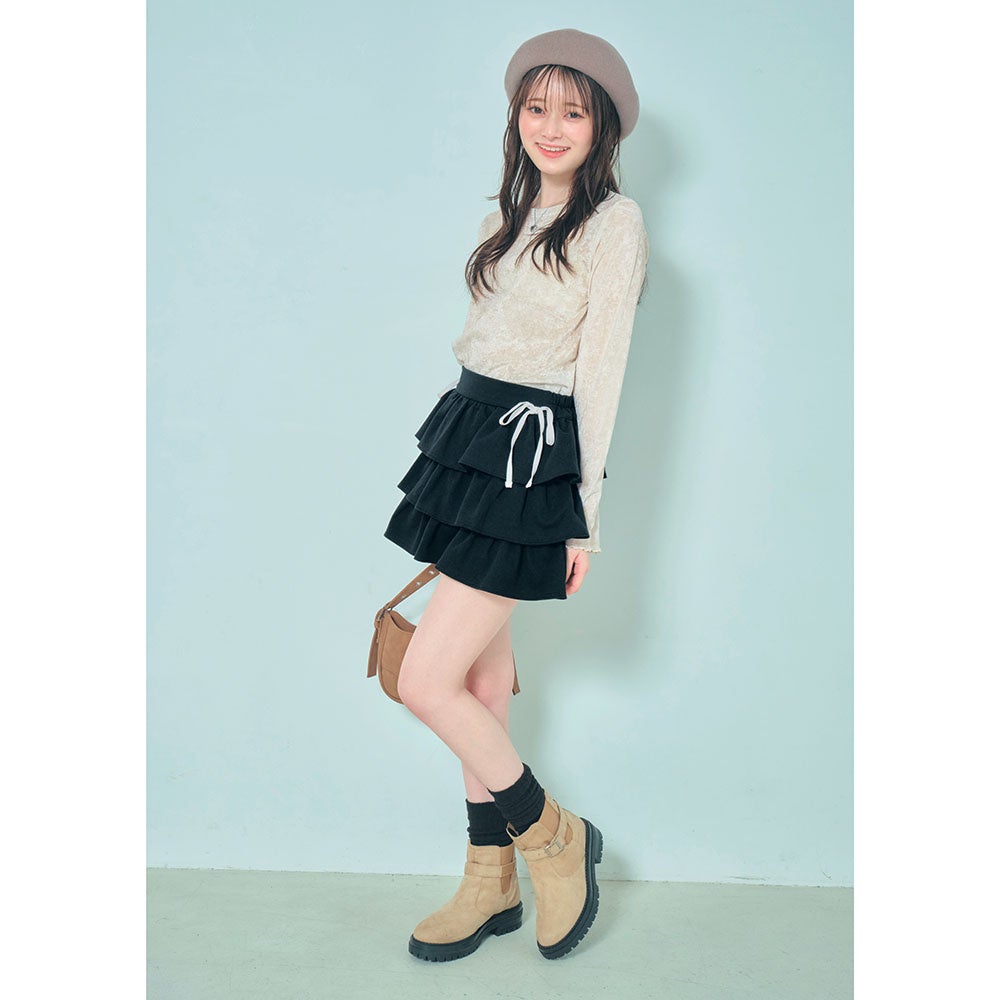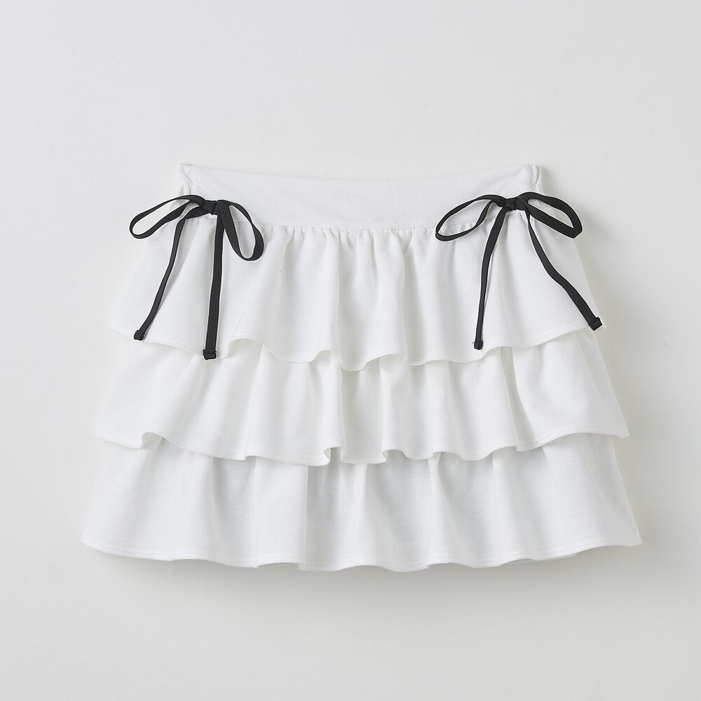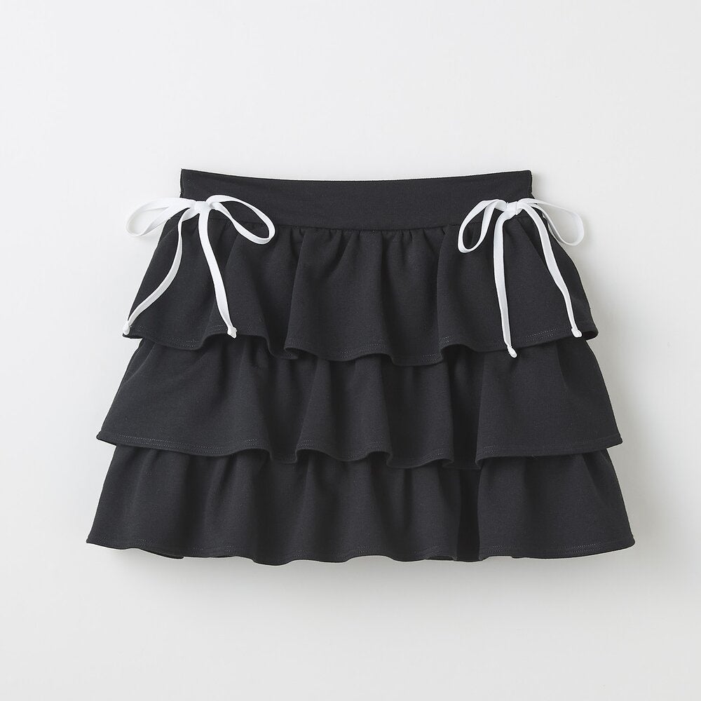 ●インナーパンツ付きサイドリボンコットンスウェットティアードミニスカート