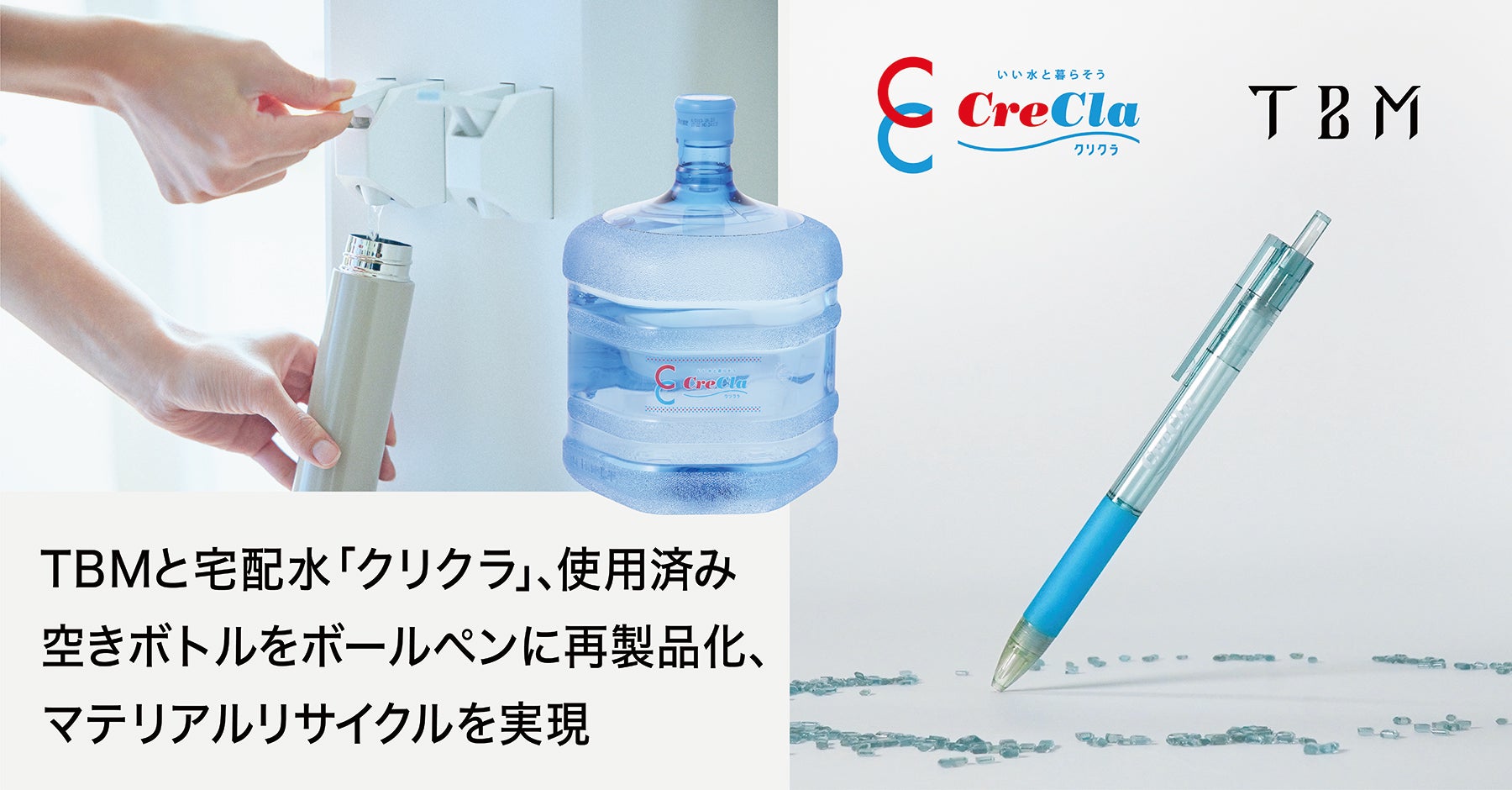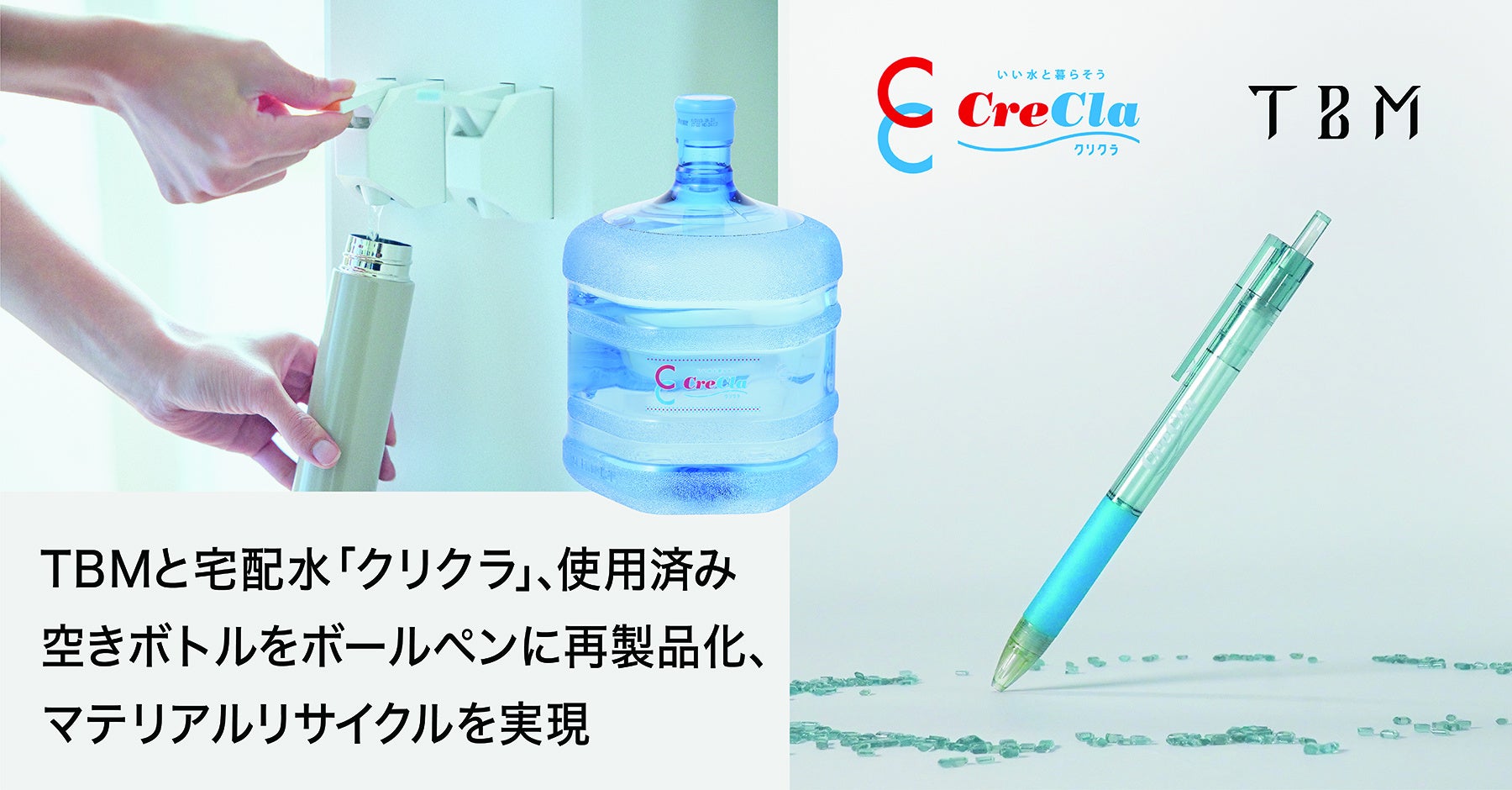 TBM と宅配水「クリクラ」のナック、マテリアルリサイクルを通じて使用済みの空きボトルをボールペンに再製品化
