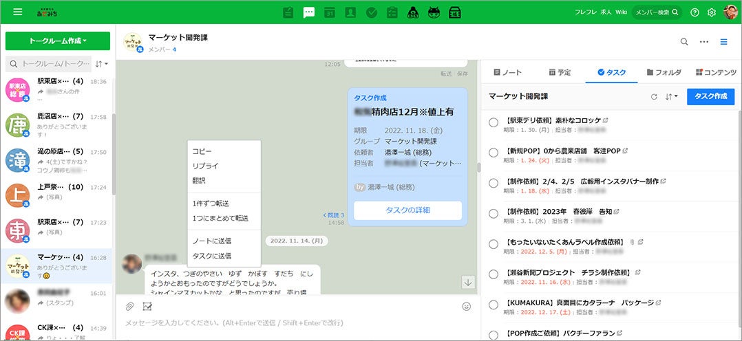 - タスク機能の活用により、POPやチラシ制作の進捗管理が簡易に