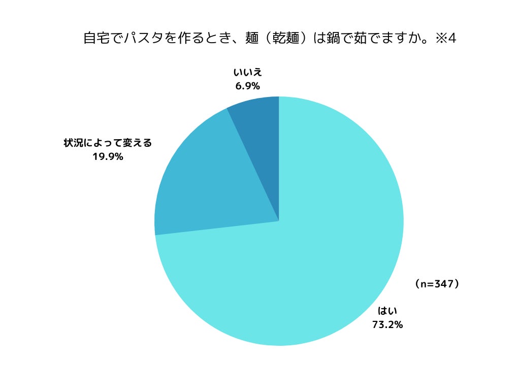 パスタを調理する際、乾麺を鍋で茹でているか聞いたところ、7割以上の方が「麺を鍋で茹でている」と回答しました。(※4)