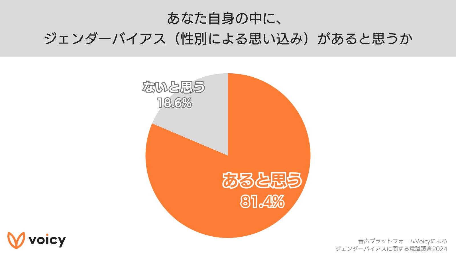 株式会社Voicyが運営する音声プラットフォームVoicyは、3月8日の国際女性デーに合わせて、ジェンダーバイアスに関する意識調査を実施しました。回答者の8割以上が「ジェンダーバイアスは良くないと思い、思い込みを持たないように気をつけている」一方で、「自身に思い込みがあると思う」と回答しました。また、2024年3月4日(月)から3月10日(日)の7日間、音声特集「#思い込みに気づいた瞬間」を実施します。Voicyは、声を通じて、ジェンダーバイアスについて考えるきっかけを届けます。