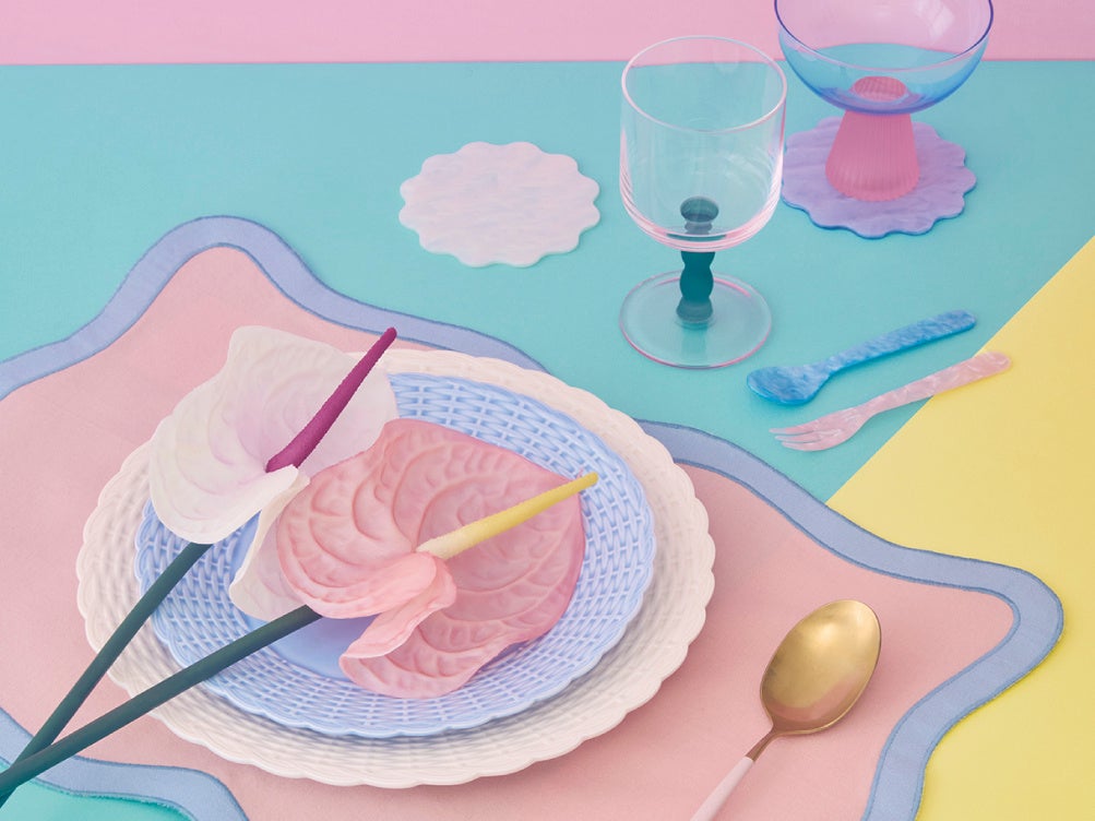 ウェーブ形状がポップなバイカラーのランチマットです。カラフルな色味でトレンド感あるワンランク上のテーブルコーディネートが完成します。