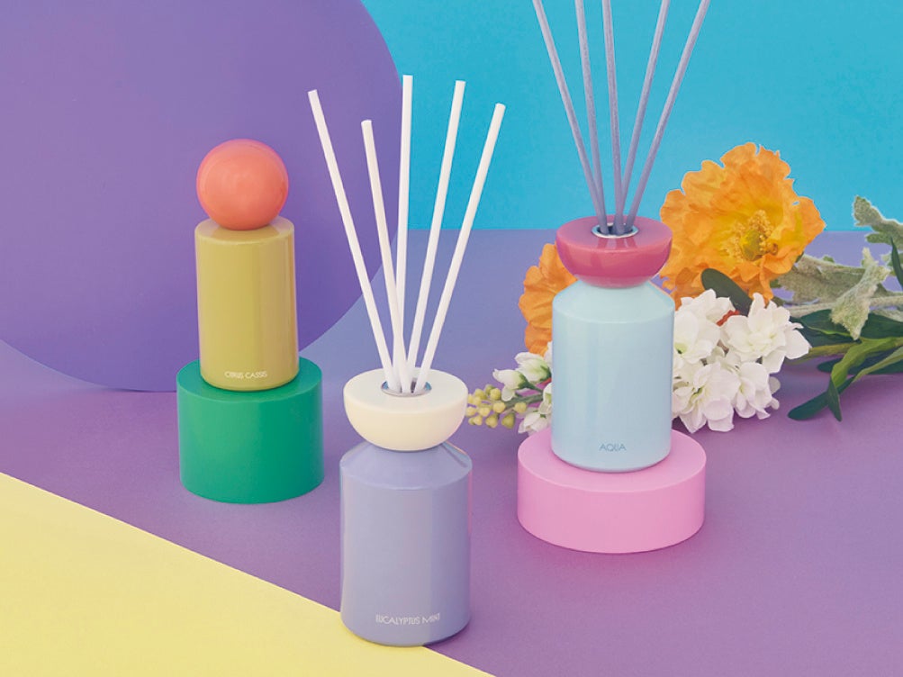 明るいカラーでポップなデザインのディフューザーとフレグランススプレーです。Spring&Summerコレクションのテーマである『EASY POP!』のポジティブで躍動的なエネルギーから着想を得たフレグランスシリーズです。香りだけでなく、インテリアオブジェにもなるボトルが魅力的なアイテムです。