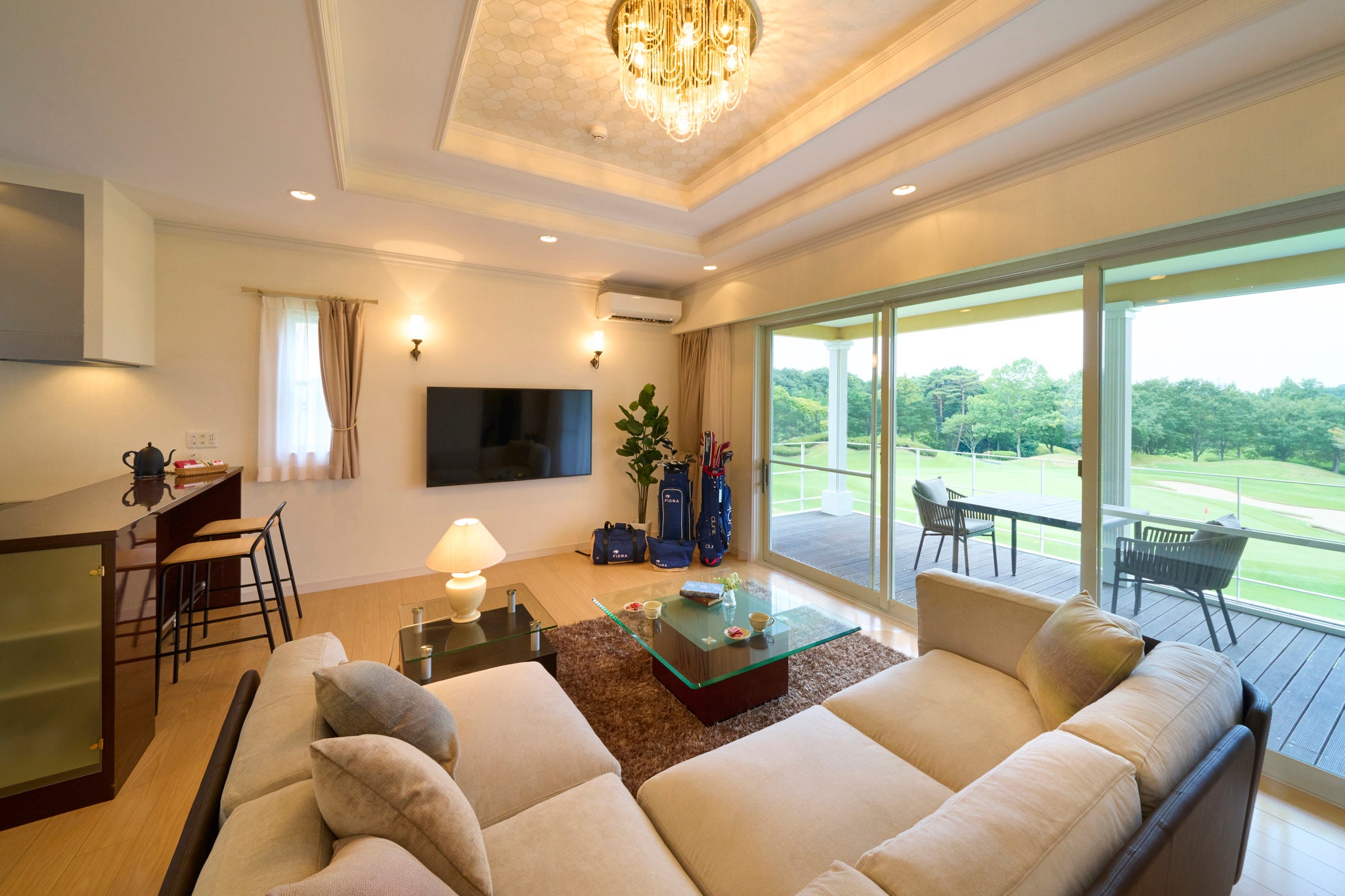 眼前にフェアウェイが広がり、ゴルフ場に暮らしているような非日常空間のフェアウェイフロントヴィラ。ゴルフコースのフェアウェイに沿って建ち並び、欧米の街並みのような独立した各ヴィラにはプライベート天然温泉が備えられ24時間楽しめます。部屋のキッチンには自炊設備も整っており、中長期滞在のご利用でも快適。スイート仕様の広々としたリビングやコースと一体化したデッキテラスからの雄大な眺望で至福の別荘ライフが楽しめます。ゴルフコースはアマチュアゴルフ界伝説の中部銀次郎氏が唯一設計・監修し、戦略的でありながらバランスよく配置された 18 ホール。広大なベント芝のワングリーンと美しいアンジュレーション、そして巧妙に配置された大小7つの池。初心者から上級者まで愉しめるコース設計となります。