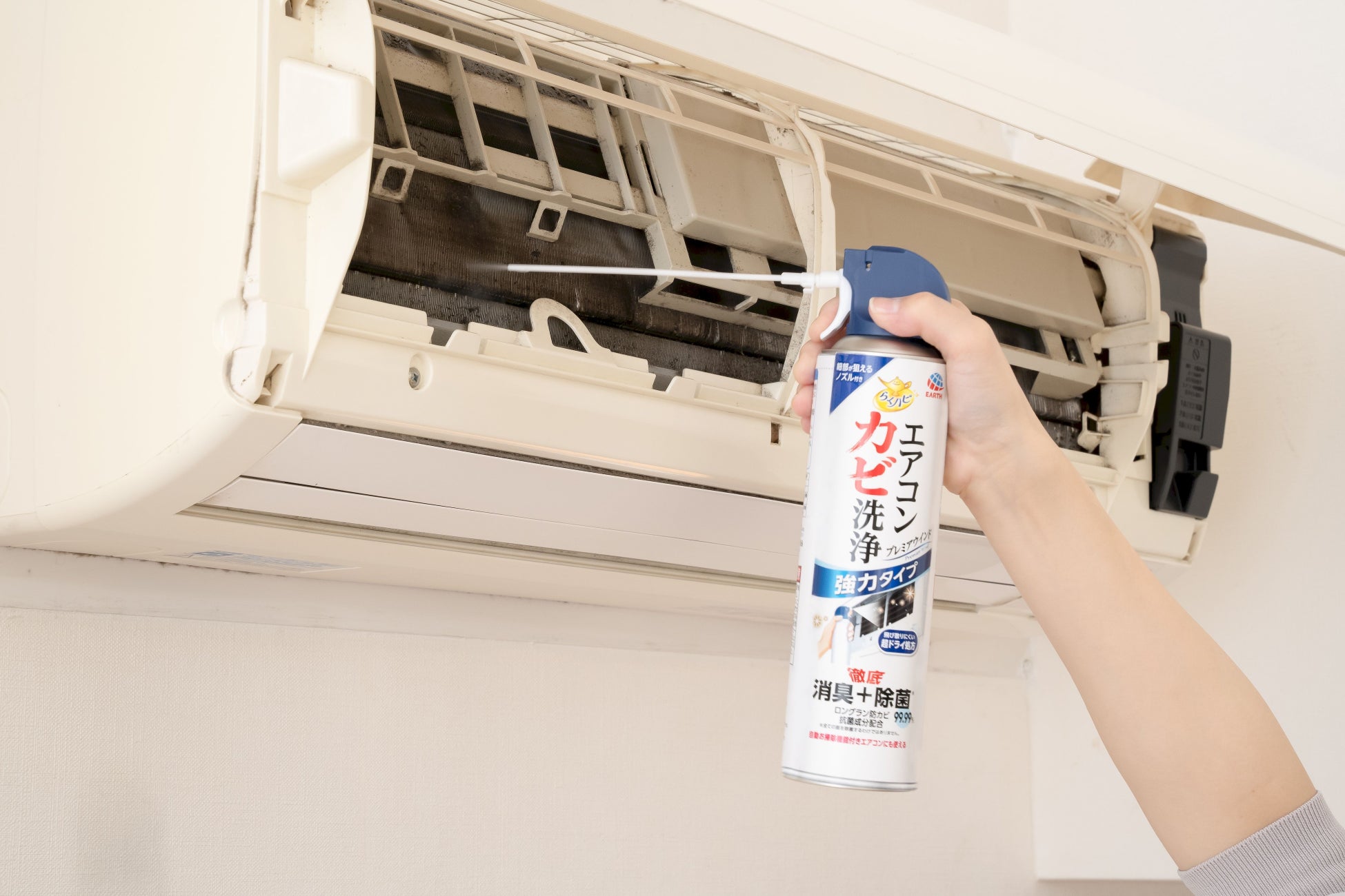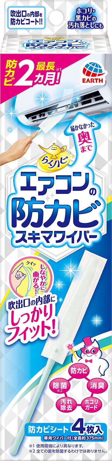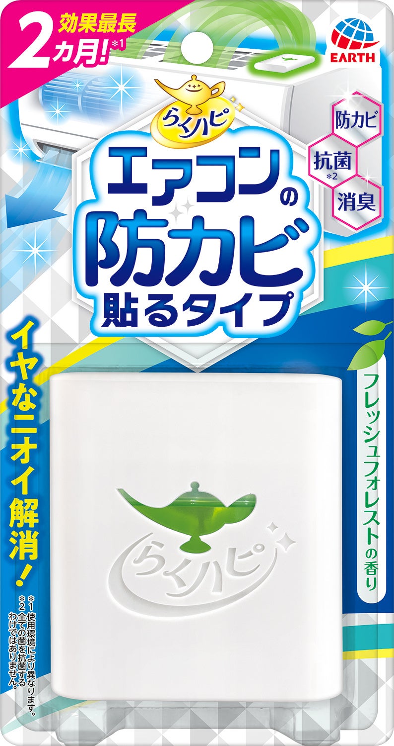 アース製薬から、手軽にカビ洗浄と消臭、除菌※1!1本で2回分、合計約6ヵ月※2の防カビ効果が続く『らくハピ エアコンカビ洗浄 プレミアウインド』を新発売