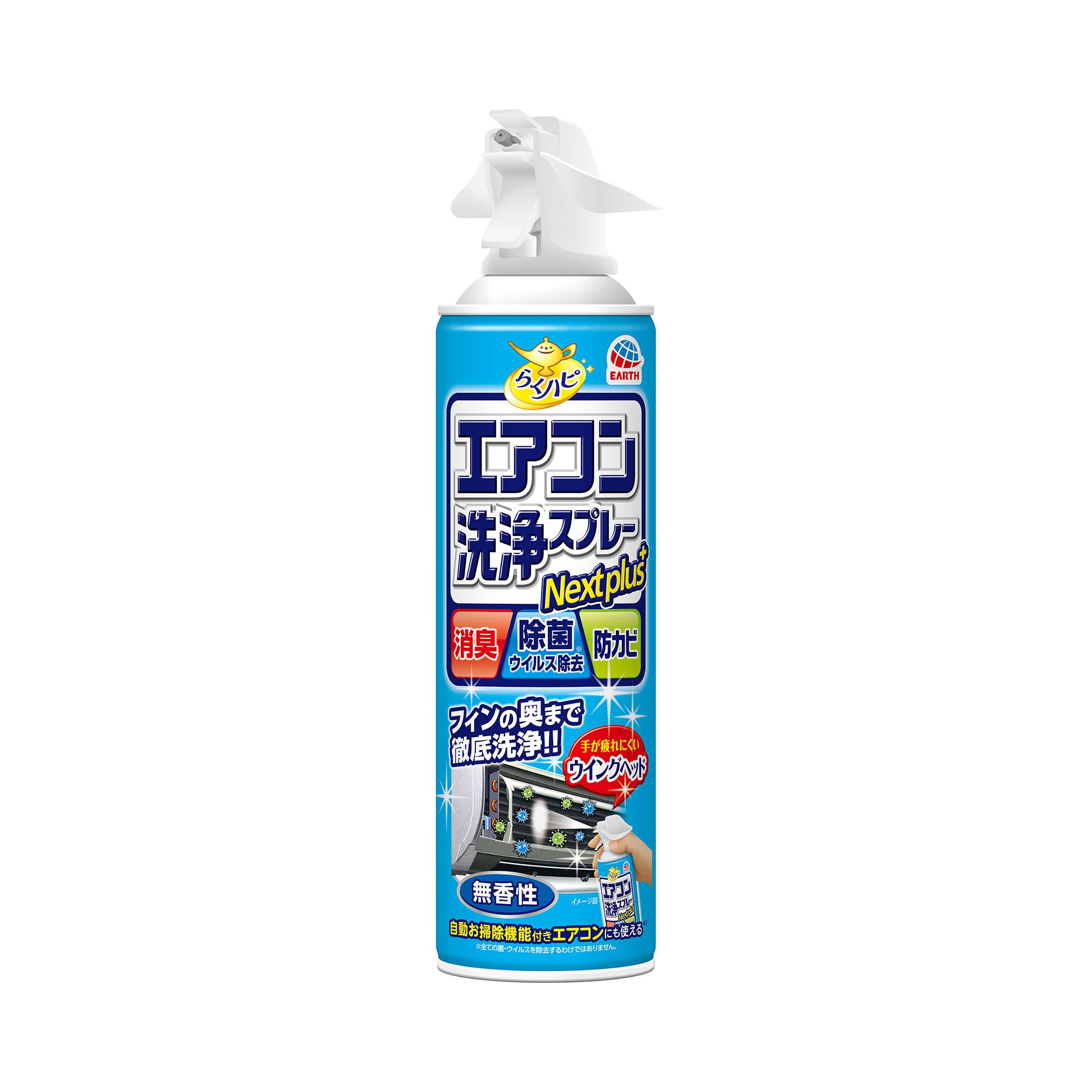 本商品は、スプレーするだけでエアコンのフィンに発生したカビを強力に洗浄し、カビの生育を防ぎます。ロング ノズル付きの2WAY仕様なので、フィンとフィンの狭いすき間もしっかり洗浄できます。防カビ効果は約3ヵ月持続し、1本で2回使用できるため、再使用した場合は合計約6ヵ月の防カビが可能です※2。さらに、気になるニオイを消臭し、カビの原因菌まで除菌※1します。超ドライ処方で速乾性があるため、洗浄後もすぐに乾き、待ち時間なくエアコンを使用できます。季節に関係なく、3ヵ月に一度の定期的な使用をおすすめします。