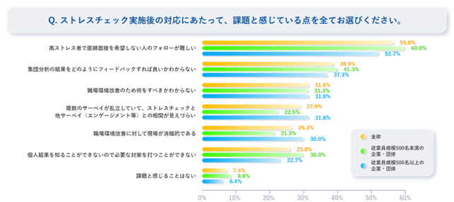 ストレスチェック実施「後」の課題については「高ストレス者のフォロー」が最も多く挙げられる。