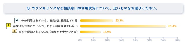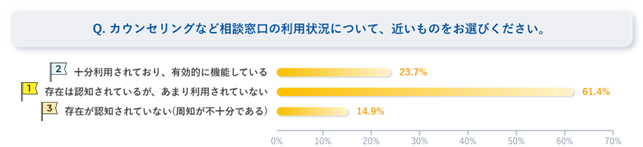 一方で、相談窓口については「存在は認知されているが、あまり利用されていない」との回答が6割超となり、利用促進における課題も浮き彫りになっている。