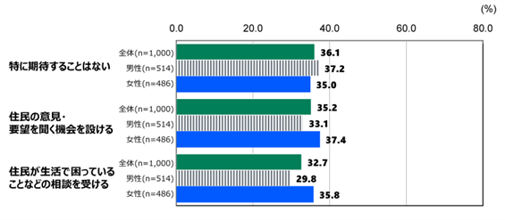 住民の意見・要望を聞く機会を設ける 35.2% 住民が困っていることなどの相談を受ける 32.7%