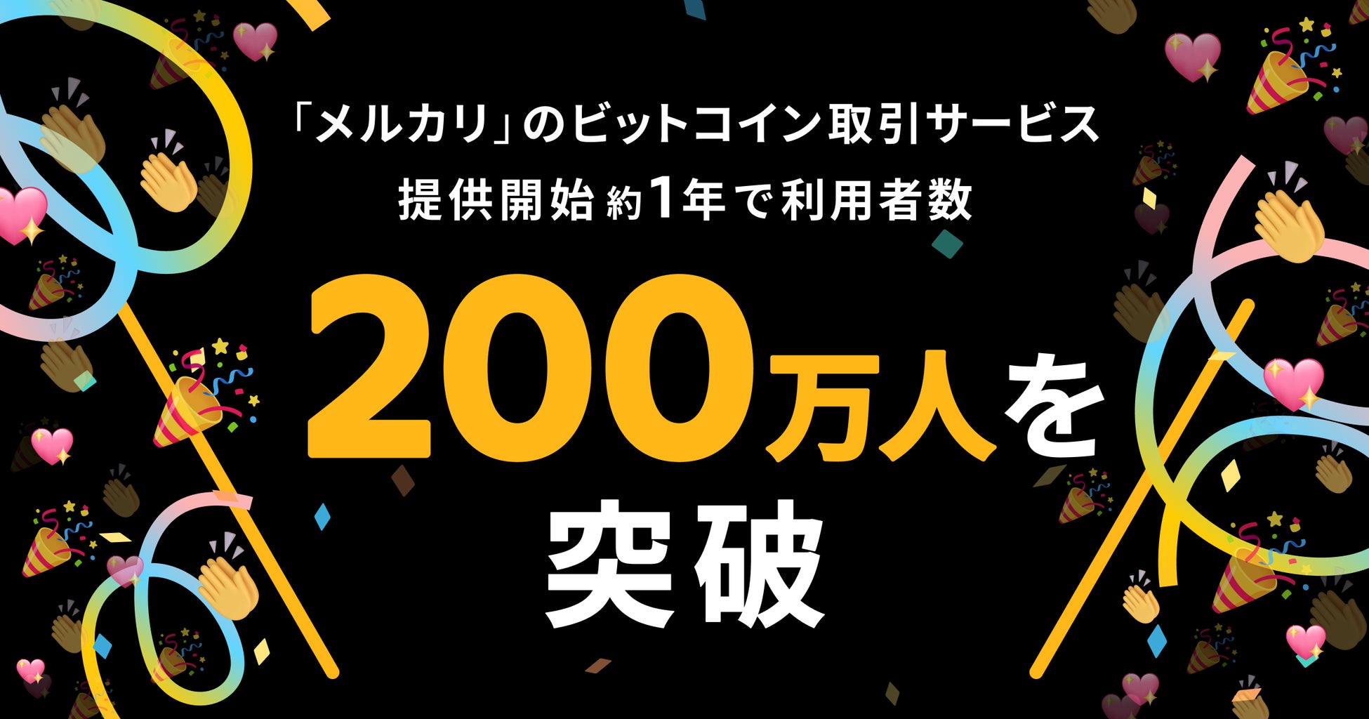 株式会社メルカリ(以下、メルカリ)の子会社で、メルカリグループにおけるブロックチェーンサービスの提供・開発を行う株式会社メルコイン(以下、メルコイン)が提供するビットコイン取引サービスの利用者数が約1年で200万人を突破したことをお知らせいたします(※1)。