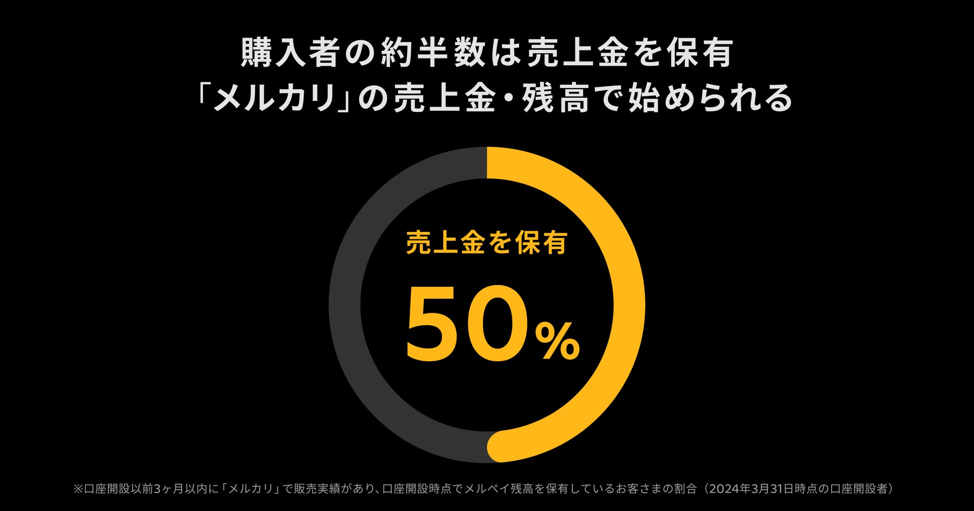 さらに、ビットコインを購入されたお客さまの50%がメルペイ残高を保有されており、このことからも、メルカリで使わなくなったモノを売って得た売上金を使って、かんたんにビットコイン取引を始められることが利用者の拡大に繋がっていると考えています。