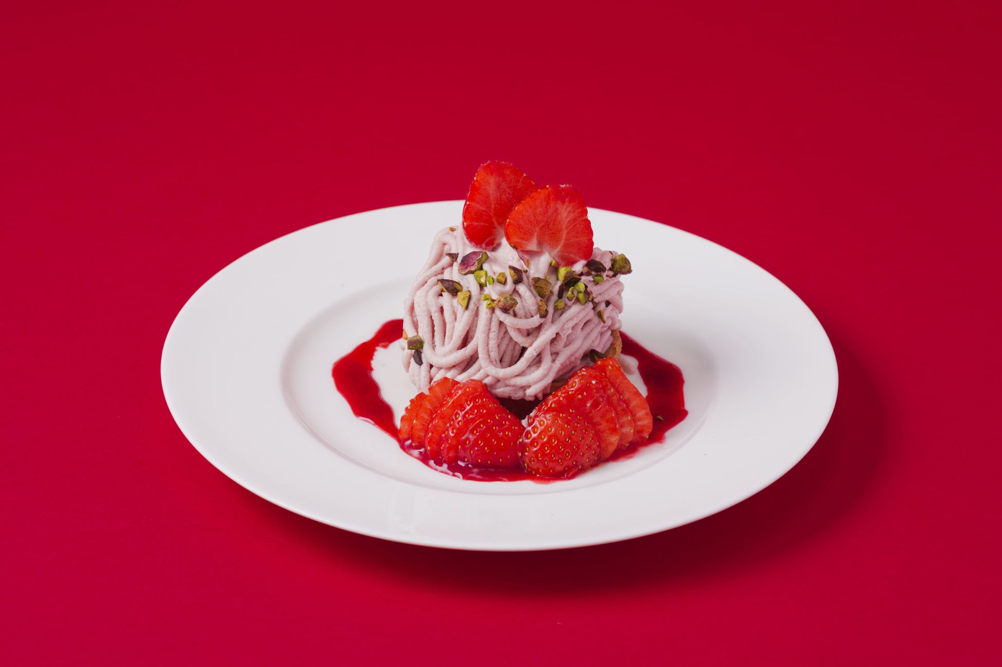 マスカルポーネチーズとホワイトチョコに苺果汁を贅沢に使ったモンブランタルト。お酒でもコーヒーでも楽しめる期間限定商品です。