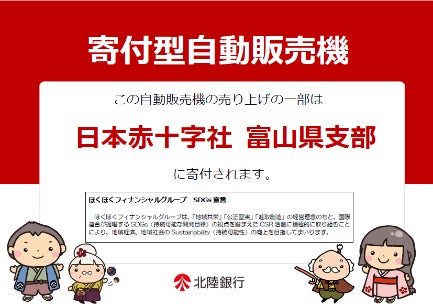 なお、この取り組みには当行の自動販売機売上金の管理を担っている株式会社ホクタテ(富山市、代表取締役社長 上願 宏幸)の賛同も得て実現しており、今回の本部関連施設約20台への導入を機に、今後北陸3県の営業店に設置済みの自動販売機も支援型に切り替えしていきます。