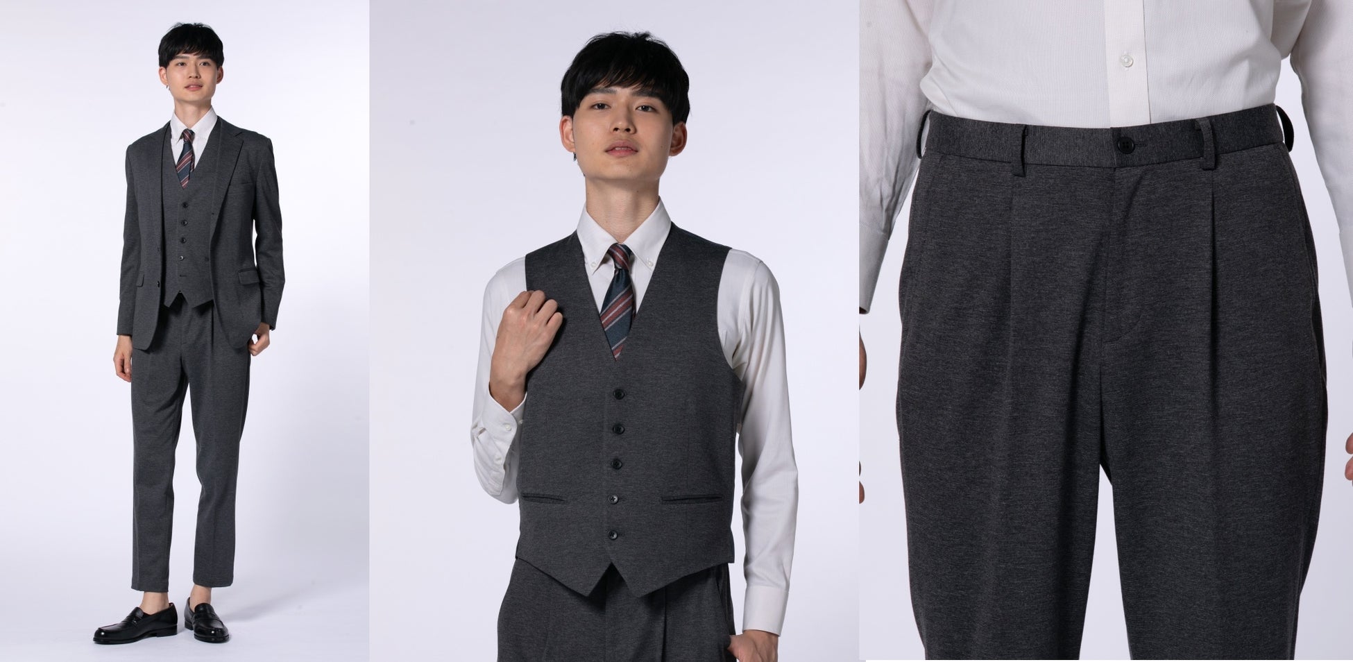 ・ラクな着心地ときちんとした見え方を兼備/選べるセットアップorベスト付きスリーピース