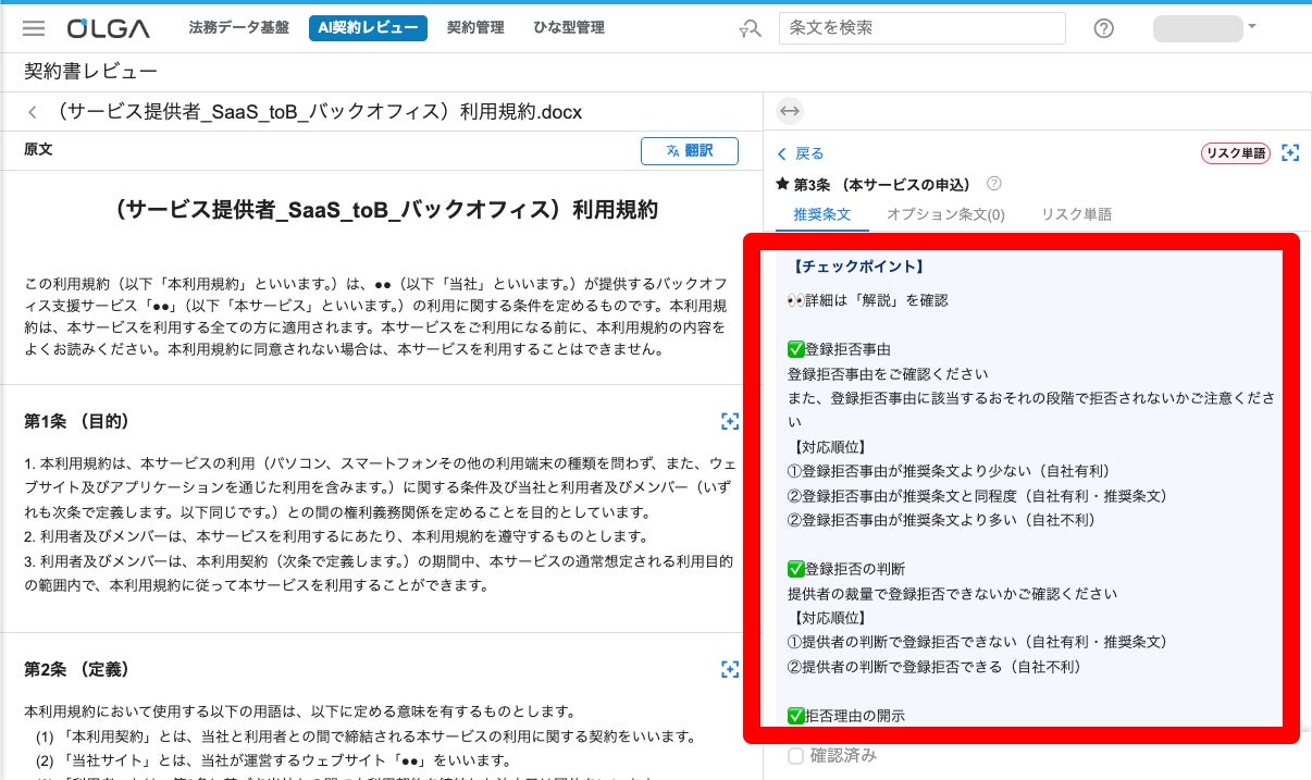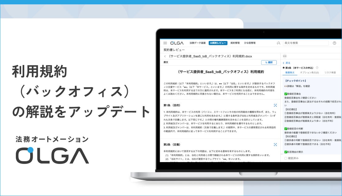 法務オートメーション「OLGA(オルガ)」が搭載する利用規約(バックオフィス)の解説をアップデート