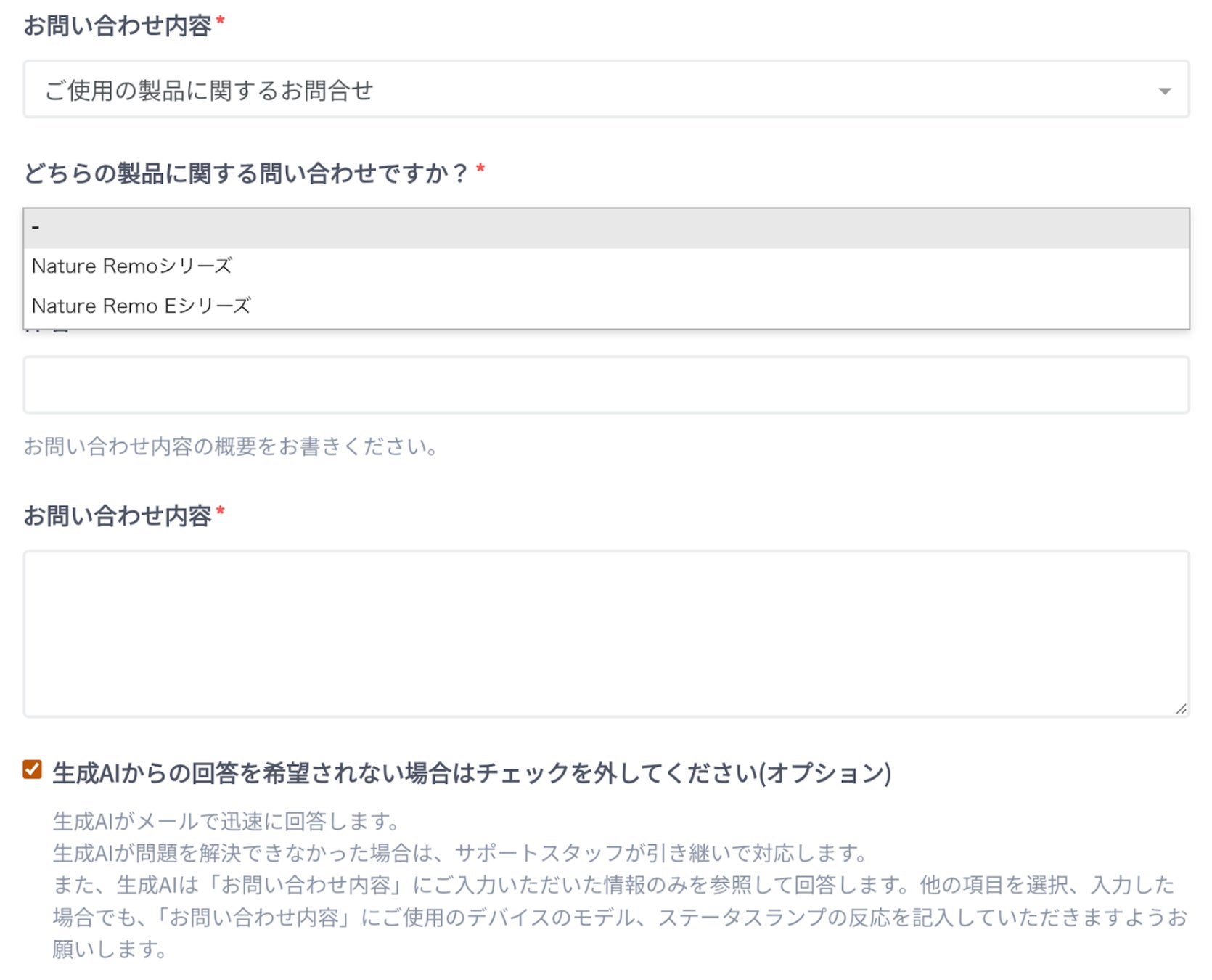 近年の環境意識の高まりや猛暑の長期化により、Natureのサポートセンターへの問い合わせ件数は、夏季のピーク時に通常の約5倍に増加していました。ピーク時対応のために担当者を増員することは難しく、シナリオ型のチャットボットを導入したこともありましたが、想定外の質問には回答できず、対応工数の削減やお客様の利便性向上に至っていませんでした。