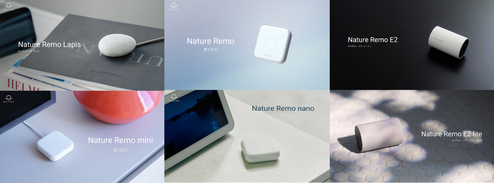 Natureは、エアコンや照明など家電をスマートフォンから操作できるスマートリモコン「Nature Remo」シリーズ(累計販売台数70万台 *)や、電力使用を最適化するエネルギーマネジメントデバイス「Nature Remo E2」を提供しています。