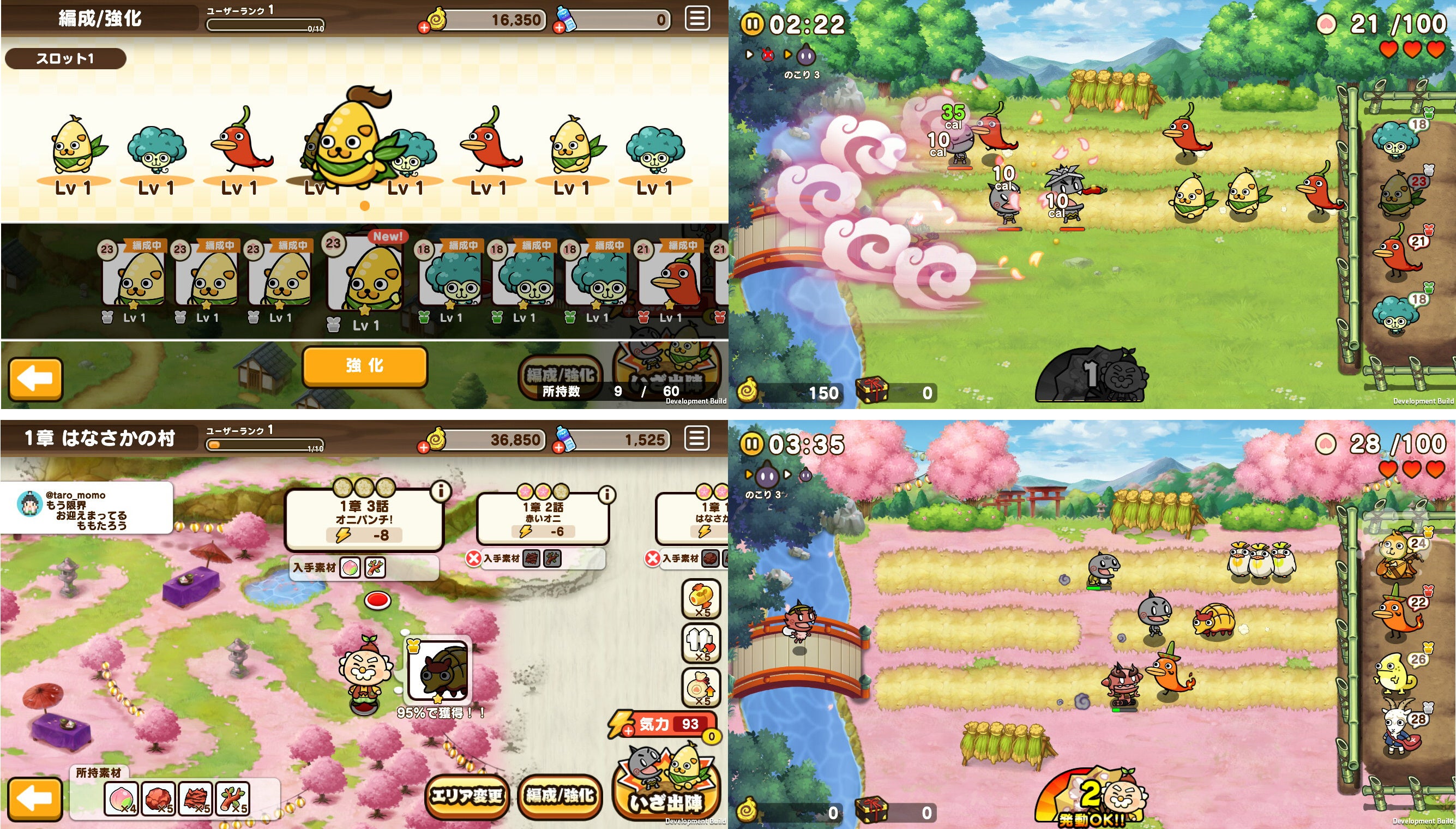 お手軽タップ操作で野菜キャラ「ベジ丸」を作って育ててオニに食べさせると、オニを退治させることができます。様々な「ベジ丸」を育てて、おじいさんと共に最強の農夫を目指しましょう。