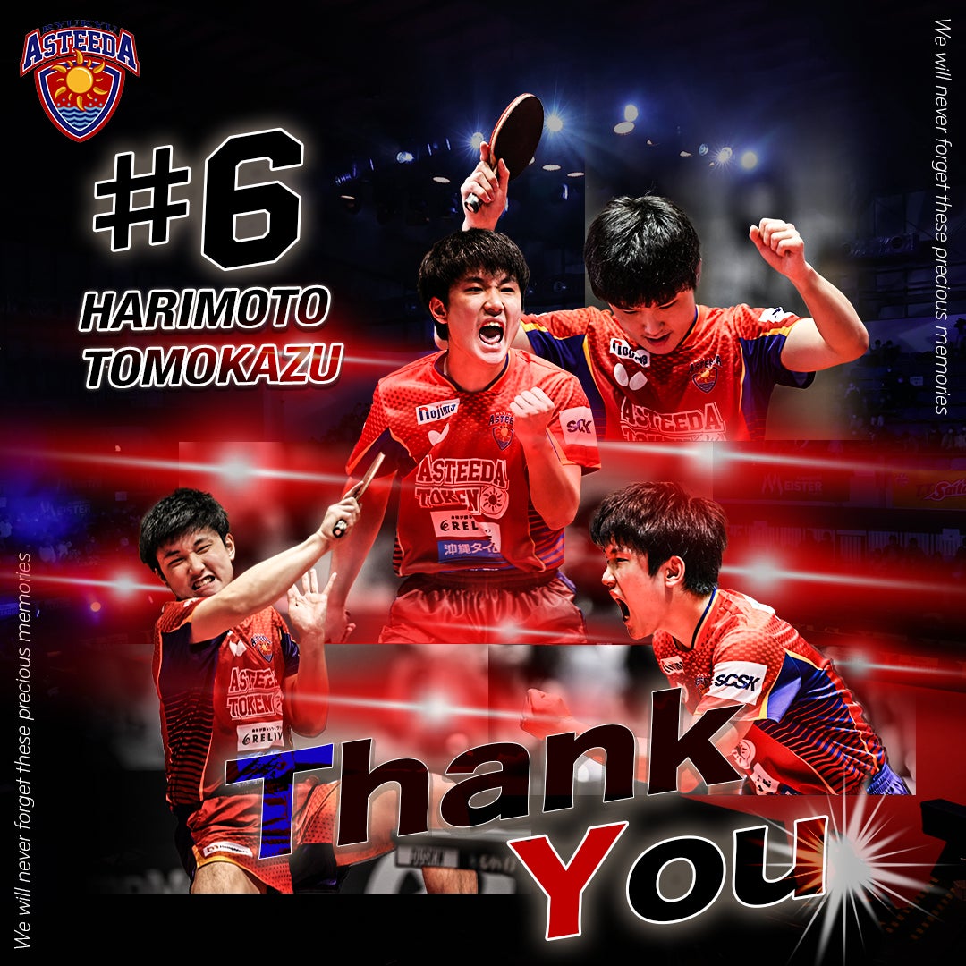 これまで張本選手、そして琉球アスティーダを熱く応援し、支えてくださった全てのファンの皆様、スポンサー、関係者の皆様に、この場を借りて心より御礼申し上げます。張本選手が築き上げてくれたものを礎に、これからも皆様に愛され、応援していただけるチームであるよう、一層努力してまいります。