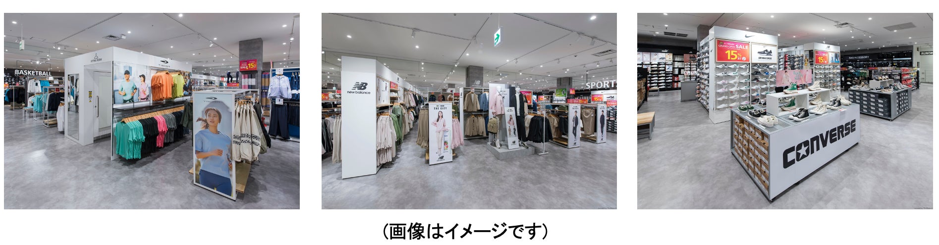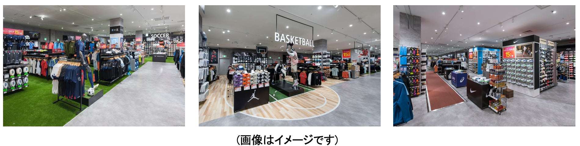 ランニング・バスケ・サッカーなどの競技スポーツアイテムからファッションとしてもお楽しみいただける機能性の高いスポーツアパレルまで!店内にアルペンアウトドアーズエッセンシャルストアも同時オープン!