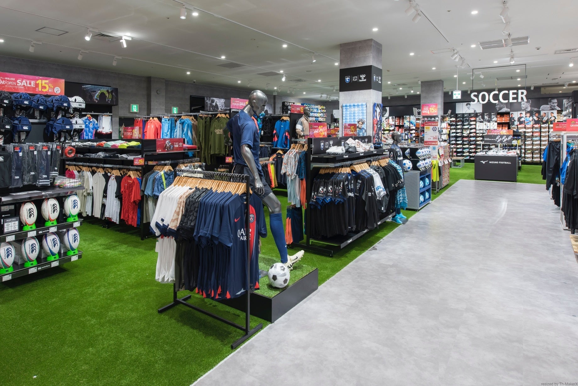 オンピッチをイメージさせる人工芝を敷き詰めたサッカーコーナーではスパイクを、ミズノ、アシックス、ナイキ、アディダス、プーマなど主要人気ブランド中心にレベル問わず豊富な品揃えを実現。ジュニアシューズは16cmから取り扱いがあり、小さいお子様から足に合ったスパイクをお選び頂くことが出来ます。また、ウェアはアスレタ・プーマ・ナイキ・アンブロ等の人気ブランド中心に部活生・ジュニア向けに幅広い品揃えを楽しんでいただけます。