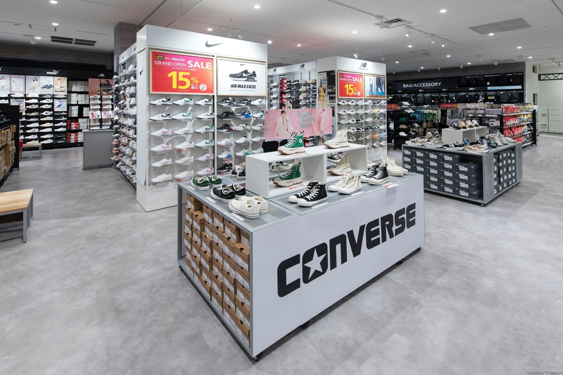 スニーカーからウォーキングシューズ、コンフォートシューズまで豊富に取り揃えており、10ブランドを展開。ナイキのエアマックスやニューバランスの574/327、さらにコンバースオールスターなど人気商品を集めました。