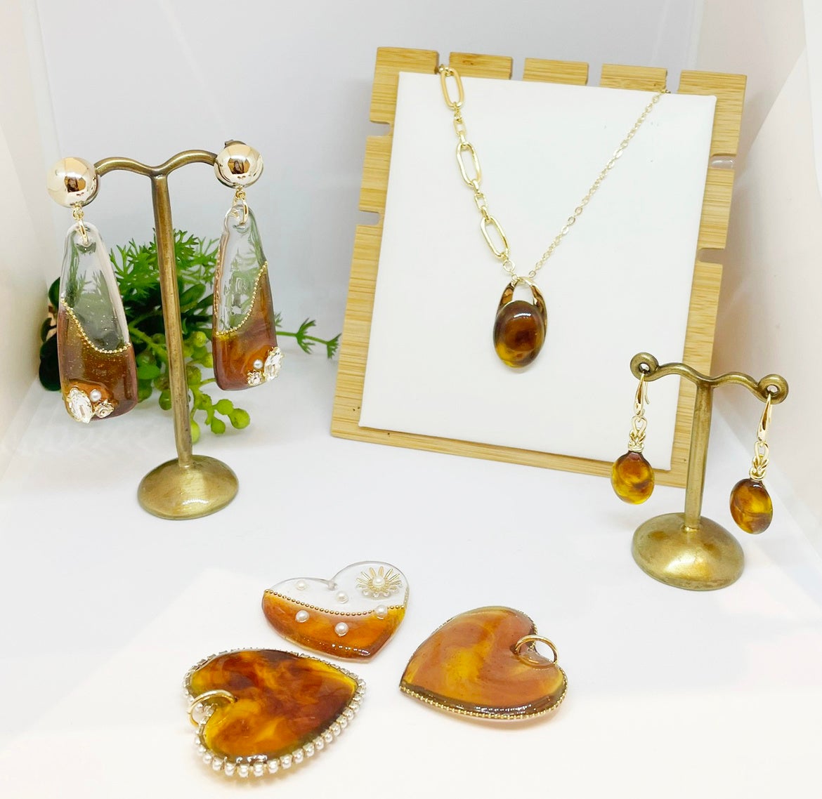 人気のレジンを使って、かわいいべっ甲柄のアクセサリーを手作りしましょう。