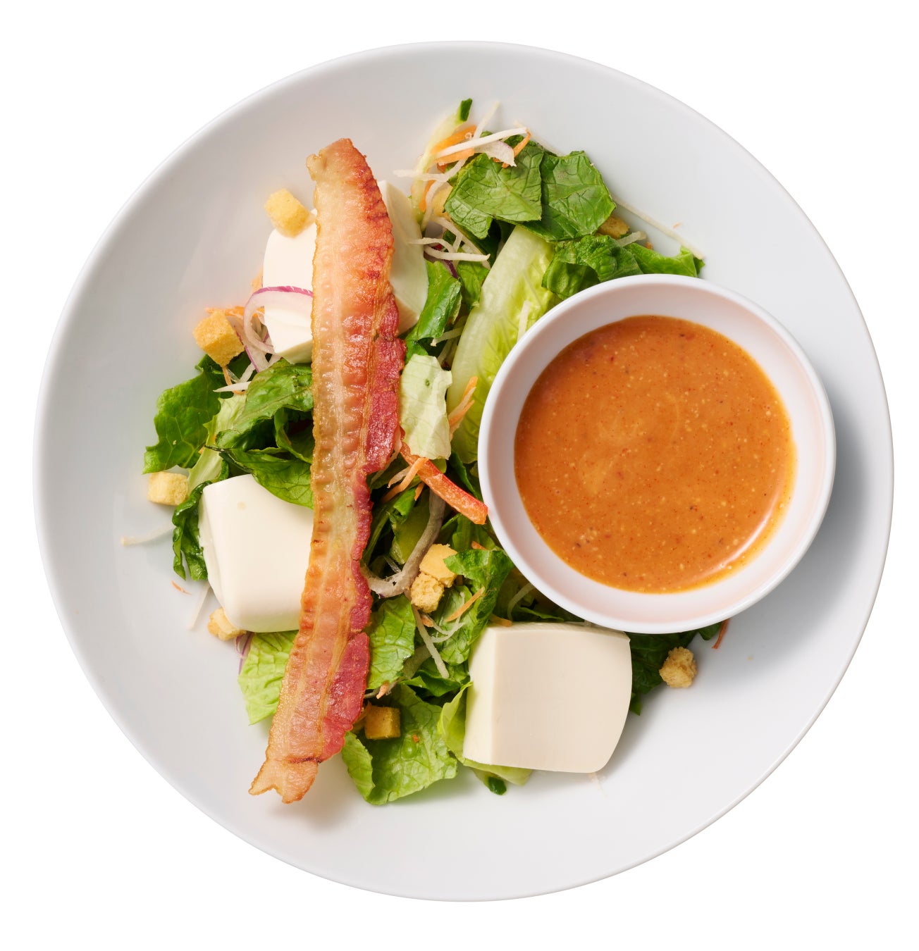 濃厚な旨辛シーザードレッシングを使用したヘルシーなサラダ。ベーコンの塩味とお豆腐のまろやかさが絶妙なバランスで、飽きの来ない一品です。