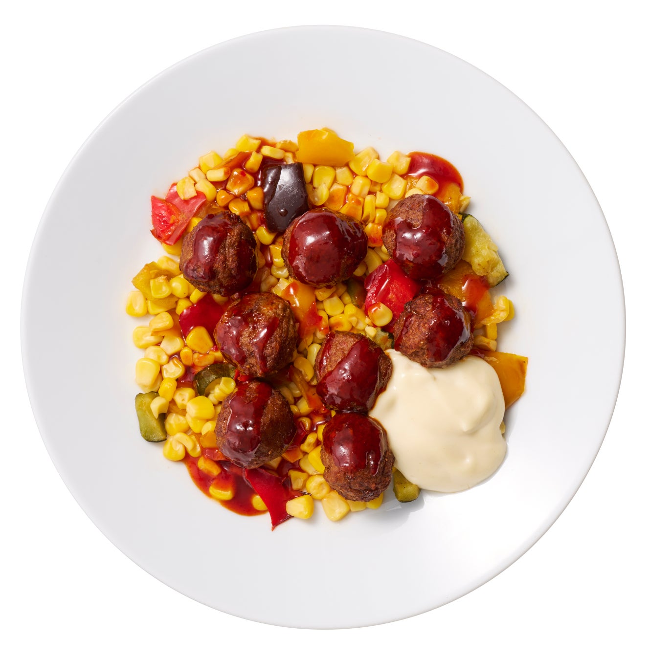 植物由来の原料でつくられたサステナブルでヘルシーなプラントボールに旨辛ヤンニョムソースをあえて、マイルドなチーズとの相性もばっちり。
