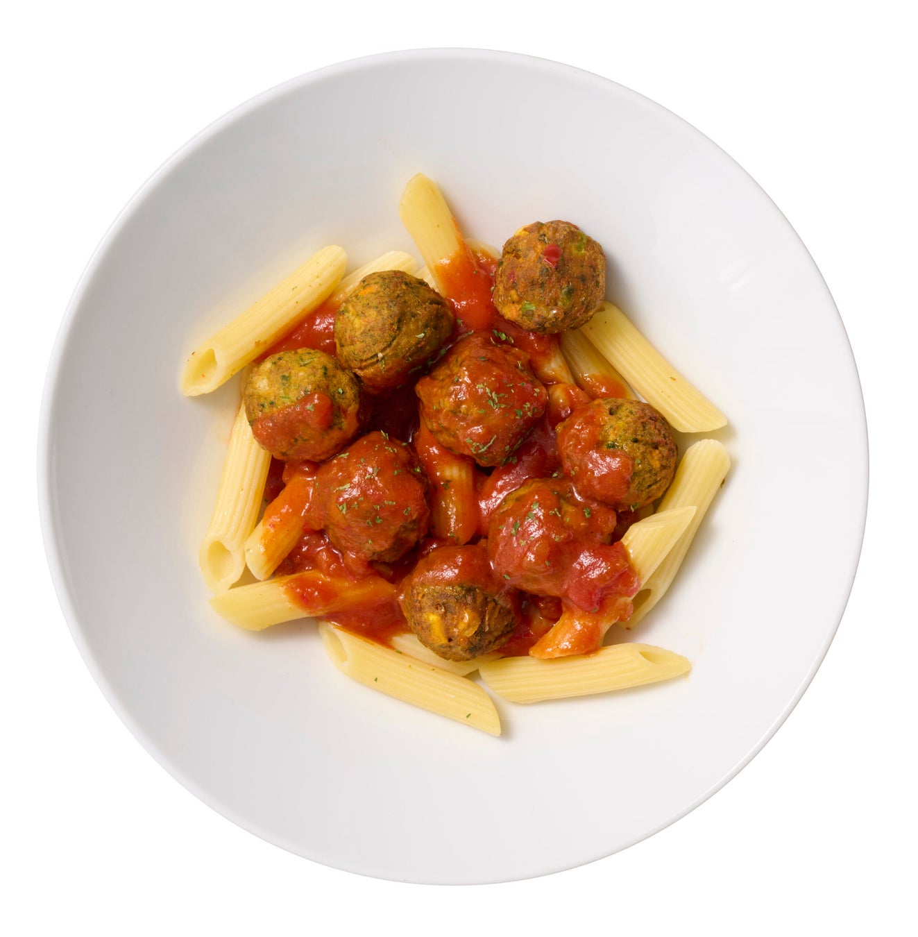 ピリッとした辛さがクセになるトマトソースと、野菜の旨味がたっぷり詰まったベジボールが調和しています。ペンネも加わり、ボリューム満点の一品です。
