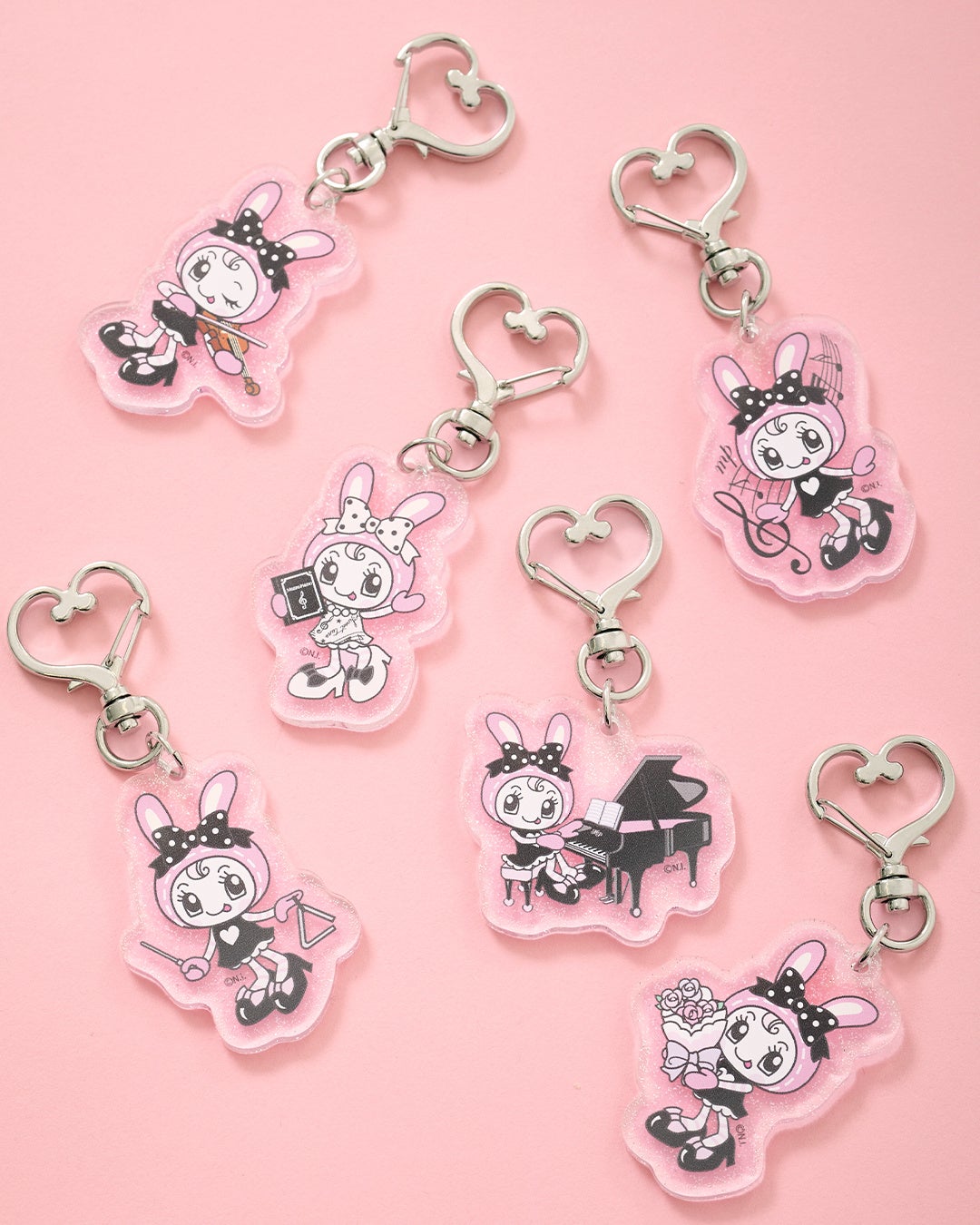 特別仕様の発表会ベリエちゃんがアクリルキーホルダーに。ラメ入りでほんのりキラキラ、かわいさ満点のデザインです。全6種のうち、どのベリエちゃんが手に入るかは開けてからのお楽しみのランダム仕様となっています。