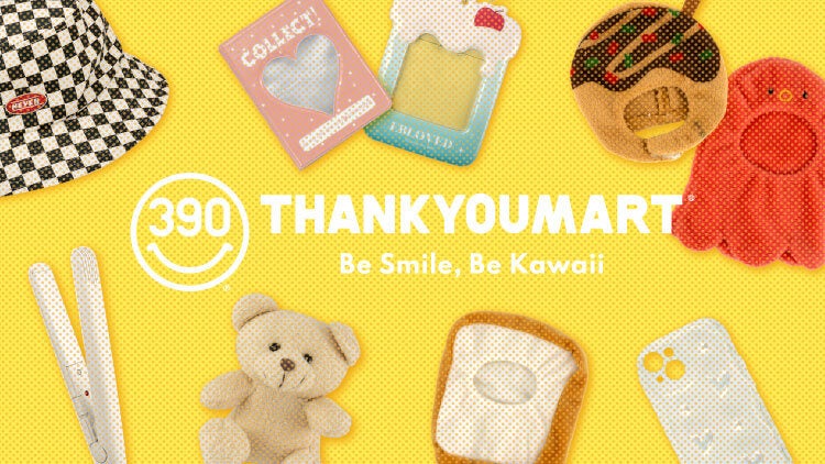 「サンキューマート」はキャラクターの限定アイテムを中心としたカワイイ推しグッズがいつ来てもALL390円で手に入るショップ。