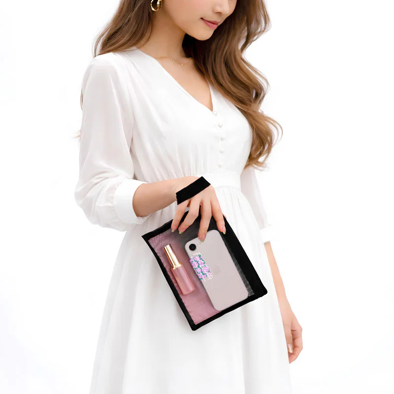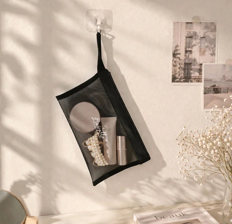 細かなメッシュ素材により中身が一目で確認可能。コスメや小物をすっきり整理でき、使い勝手の良さが魅力です。