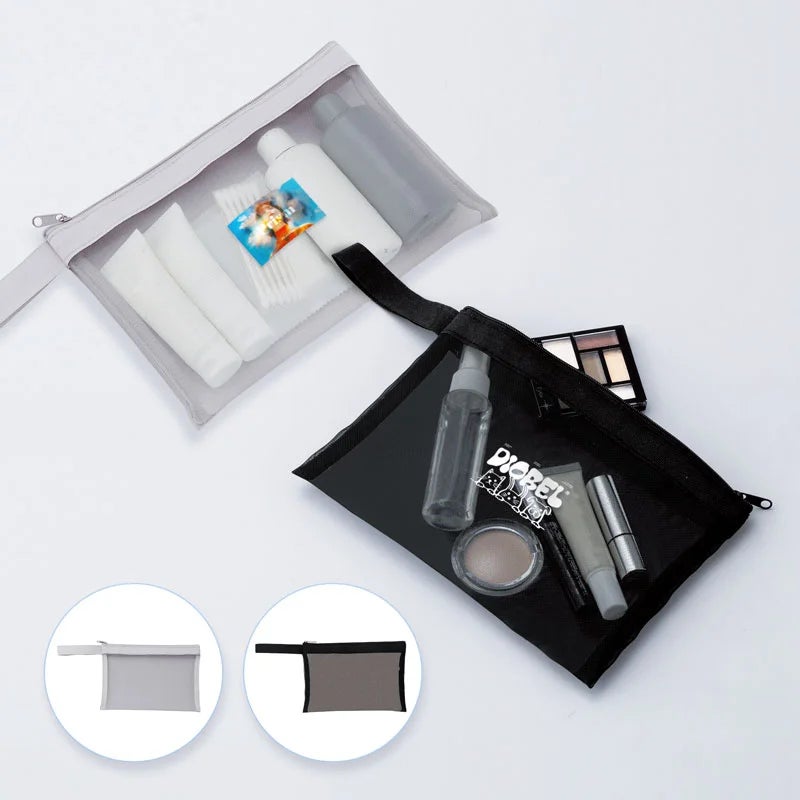 中身が見えるメッシュ素材&ストラップ付きで使いやすい!旅行・ビーチ・日常使いに最適なオリジナルポーチを1個から簡単作成