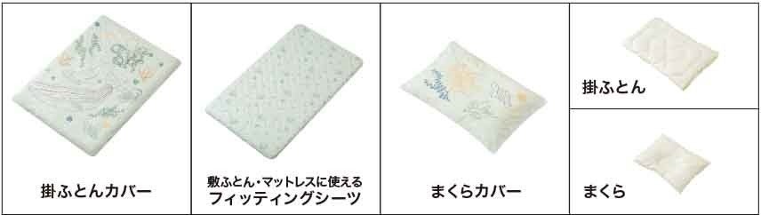 手縫いの刺繍をアクセントにあしらった掛け布団カバーやまくらカバーが入った、ベビー寝具セットが新登場。