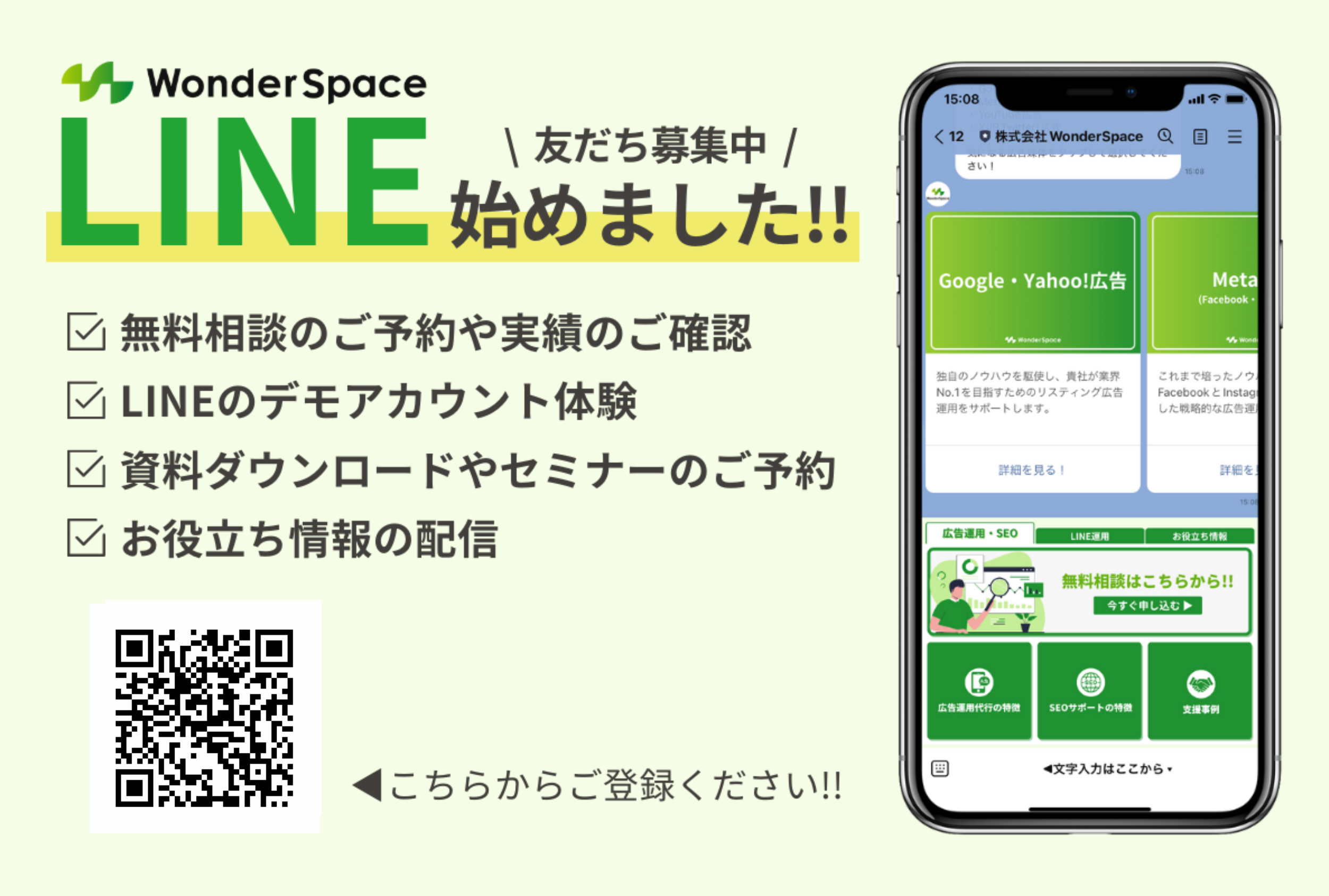『株式会社WonderSpaceLINE公式アカウント』をリリースいたしました。