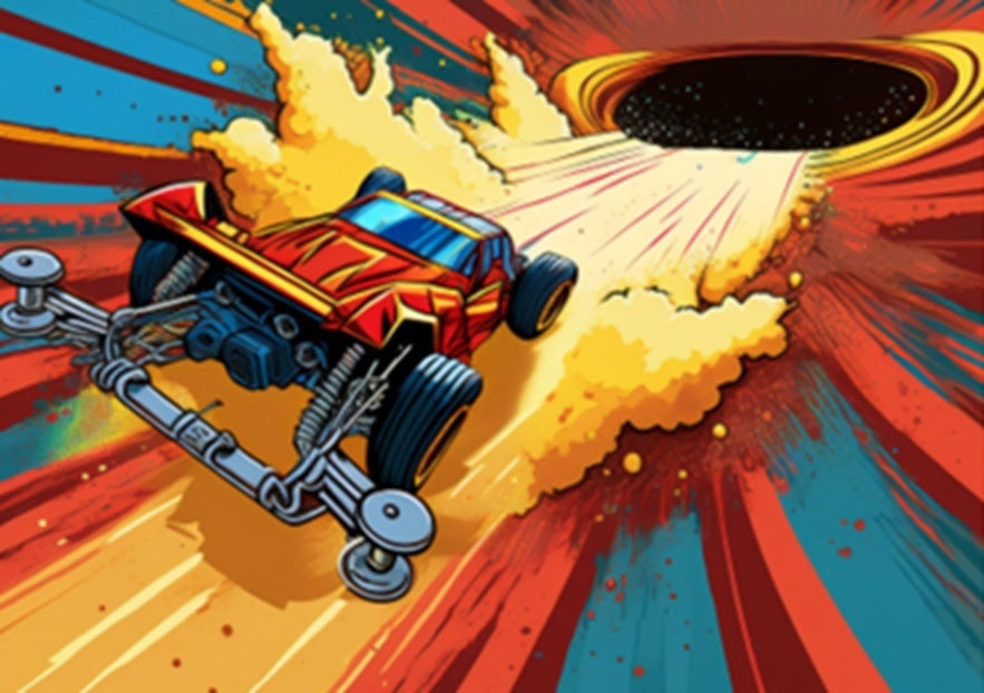 ターゲットに空いた穴をめがけて、ミニ四駆を発射しよう!大胆にジャンプさせて高得点を目指そう!