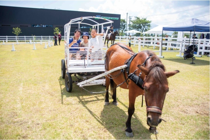 モビリティの原点「乗馬体験」に加え、馬車に乗り芝生エリアを回遊できる「フォレストホースパワー」も開催!ポニーとも触れ合えます。
