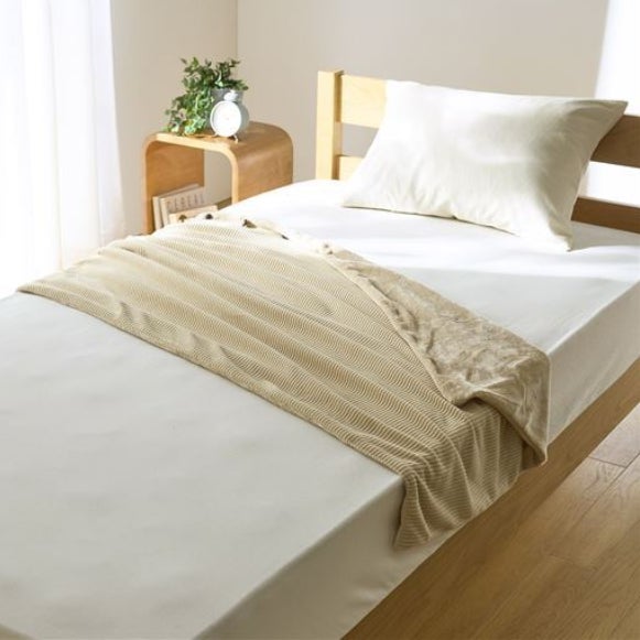 敷布団用のフィットタイプとマットレス用のボックスタイプの2展開。どちらもシーツの裏側は全周ゴム仕様なので、もたつきが少なくキレイにフィットします。ズレにくく、着脱が簡単なのも嬉しいポイント。