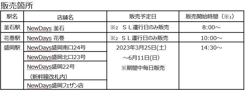 盛岡駅・花巻駅・北上駅・一ノ関駅及び釜石駅等の店舗で販売予定
