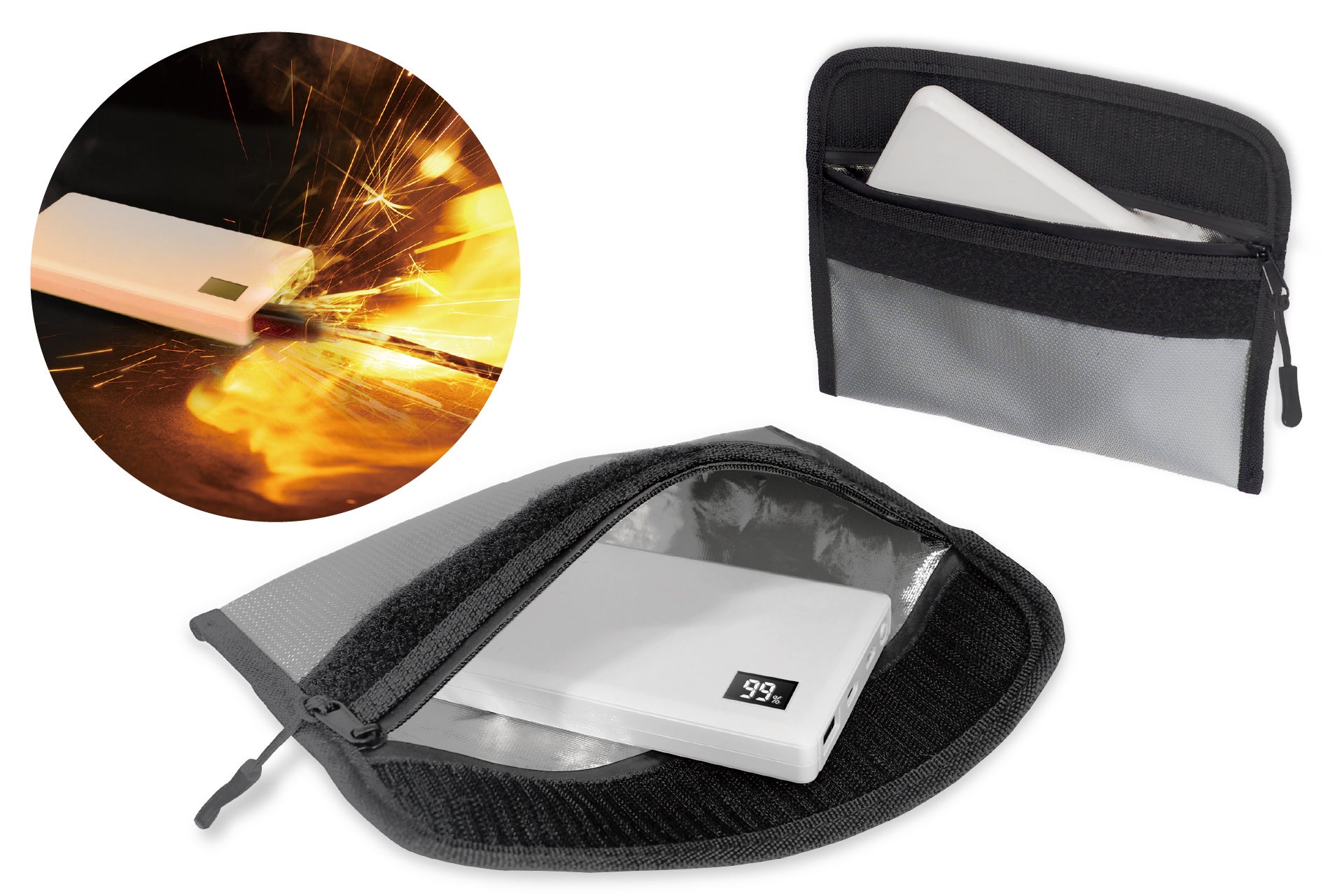リチウムイオン電池などの過充電や劣化による炎上対策に。電車や飛行機での移動時はポーチに入れて持ち運ぼう!