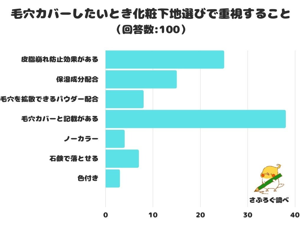 【調査レポート】毛穴カバーしたいとき化粧下地選びで重視することは?1位は「毛穴カバーと記載がある」でした!