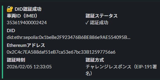 フェーズ3では、すべての車両・デバイスに分散型ID(DID)を付与し、ブロックチェーン上で認証連携を実施しました。