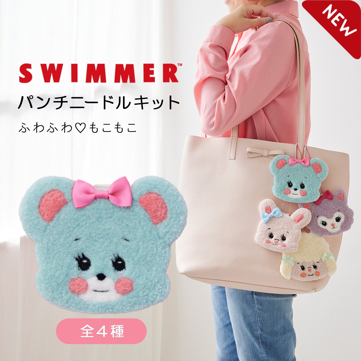 SWIMMERの人気キャラクター、くまの「ハグリー」、ねこの「キャミー」、うさぎの「リバニー」、ひつじの「ラッフィー」をそれぞれ作れる「パンチニードルキット」と、パーティデザインの「クロスステッチキット」です。”かわいいがぎゅっ!”とつまったハンドメイドキットをぜひお楽しみください♡