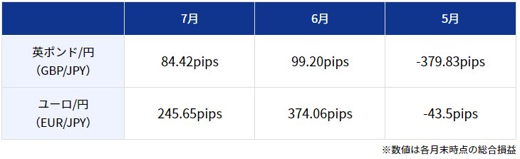 2位は英ポンド/米ドルで、7月に平均総合損益を大きく伸ばしました。