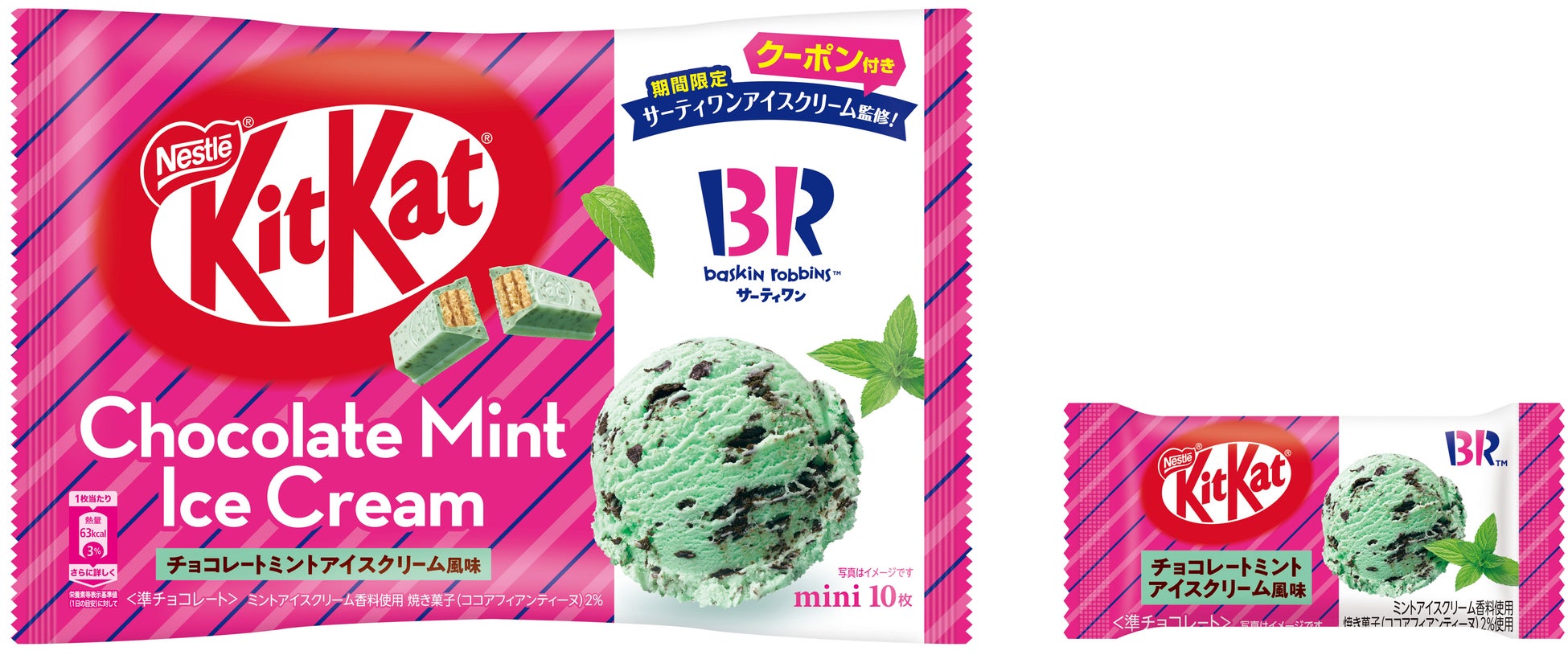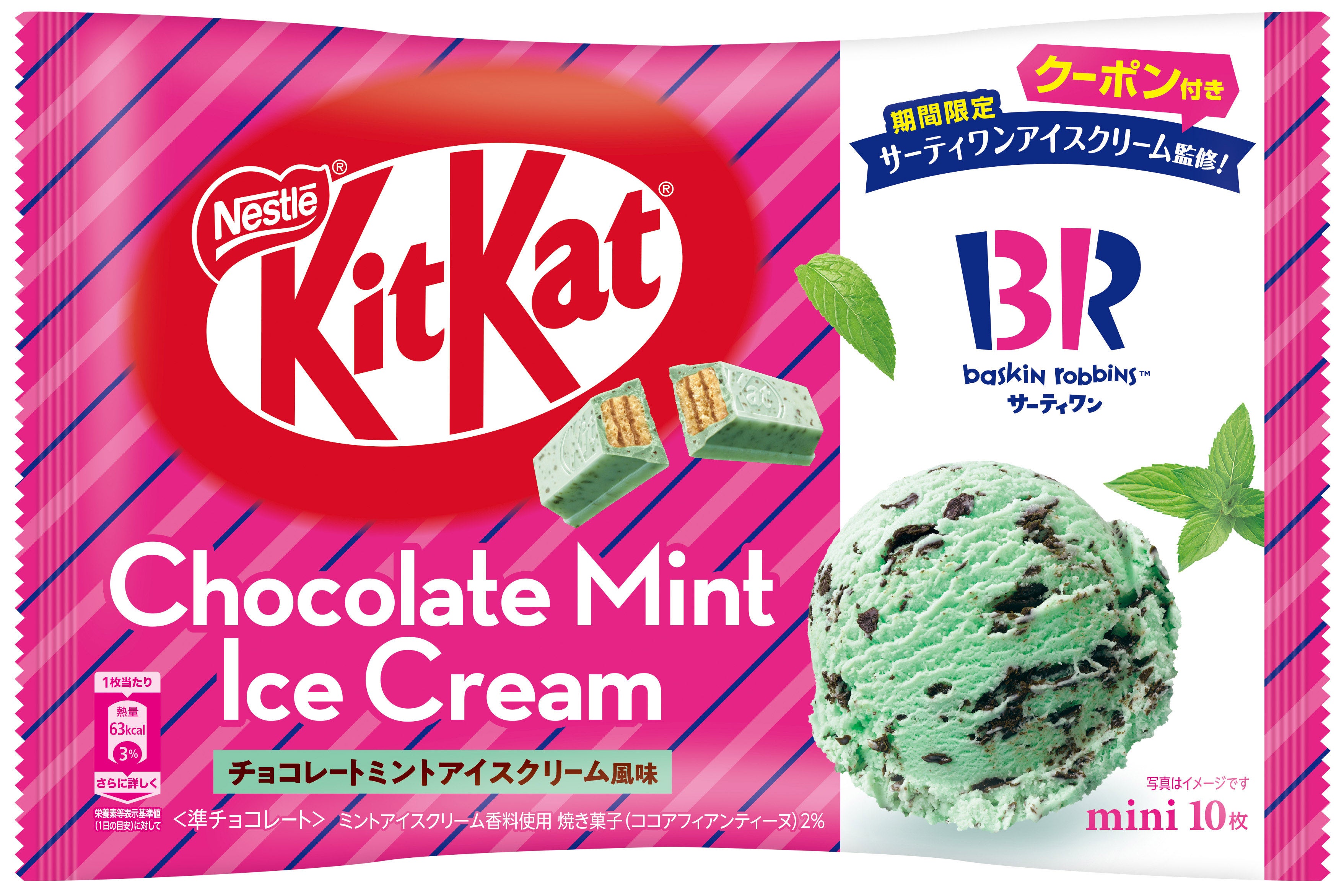 ■サーティワンの大人気フレーバー“チョコレートミント”が「キットカット」に!大袋タイプには、サーティワンで使える50円引きクーポンが付いてくる!