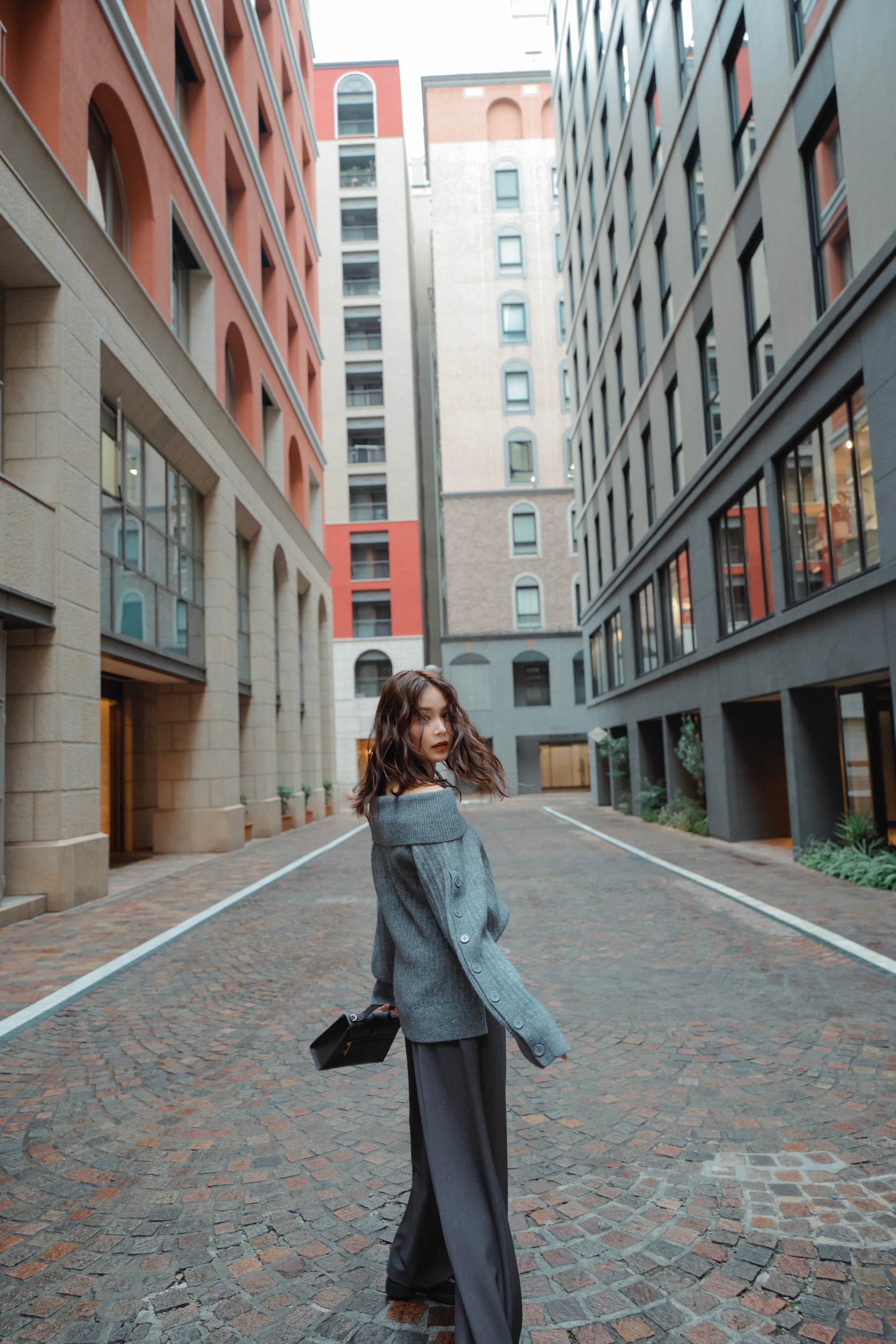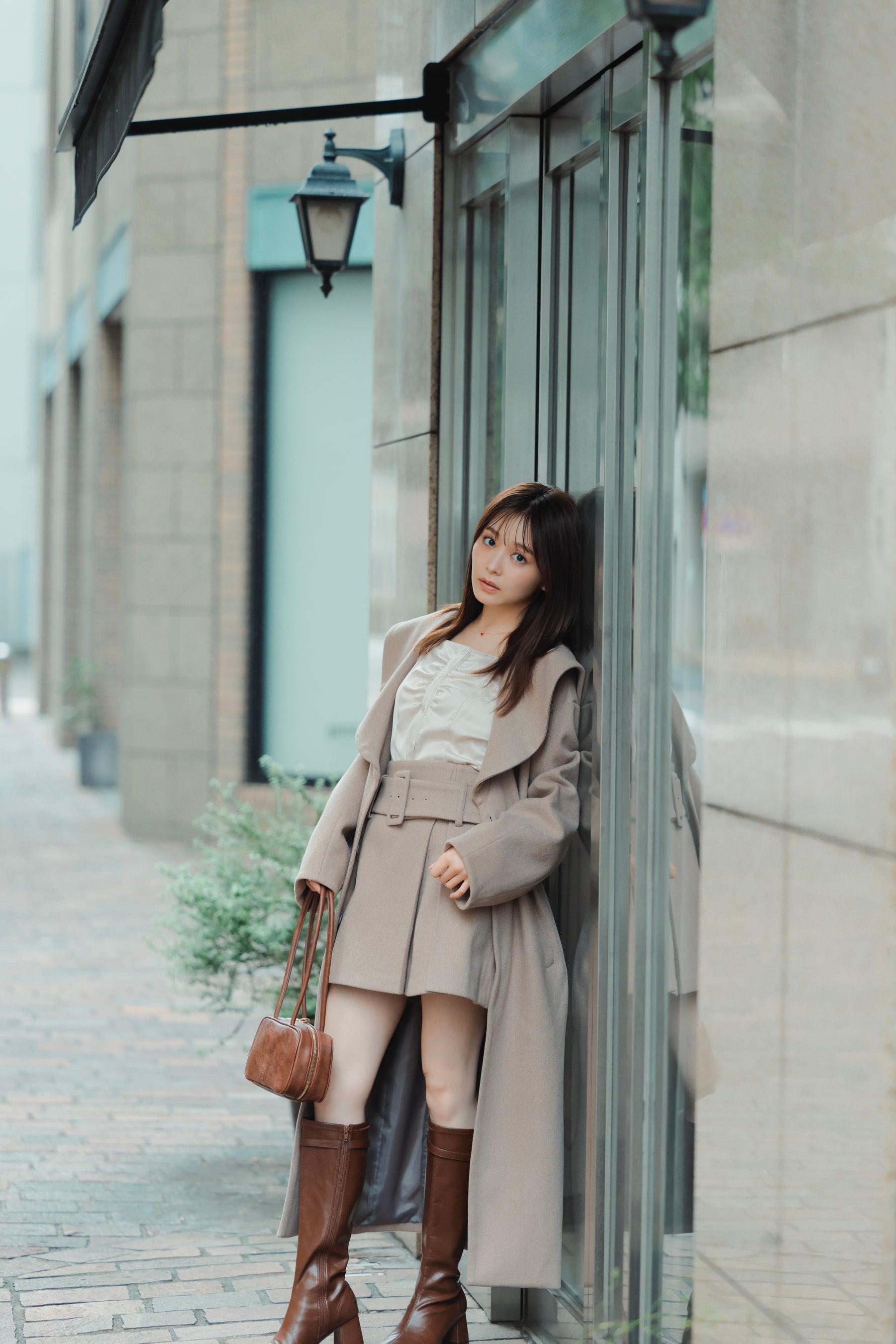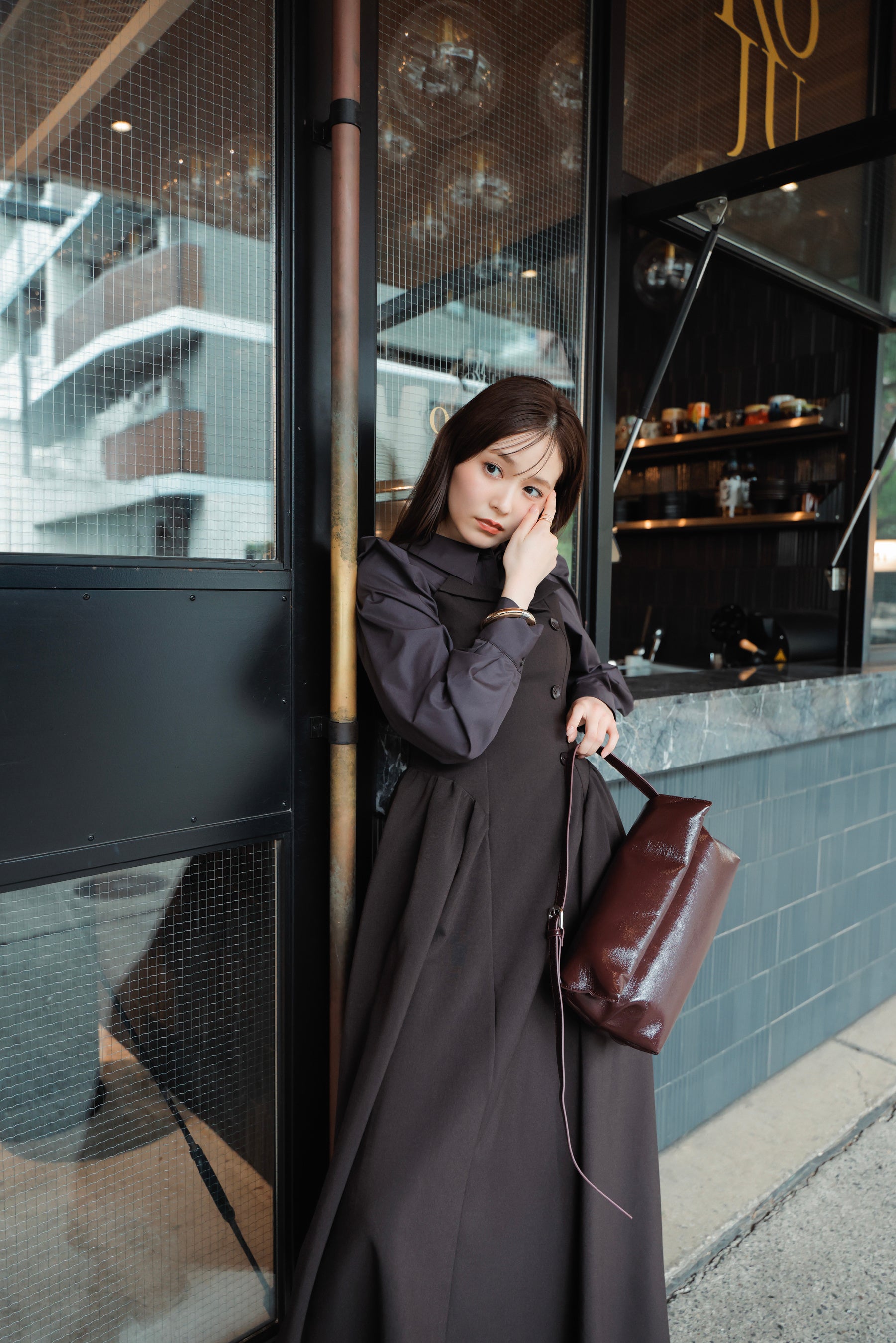 今作では、久間田琳加さんの代名詞でもある「りんか丈」のミニスカートに、ロングコートを組み合わせた上品なセットアップが登場。落ち着いたカラーパレットで統一し、女性らしさの中に芯のある強さを感じさせるコレクションに仕上がっています。