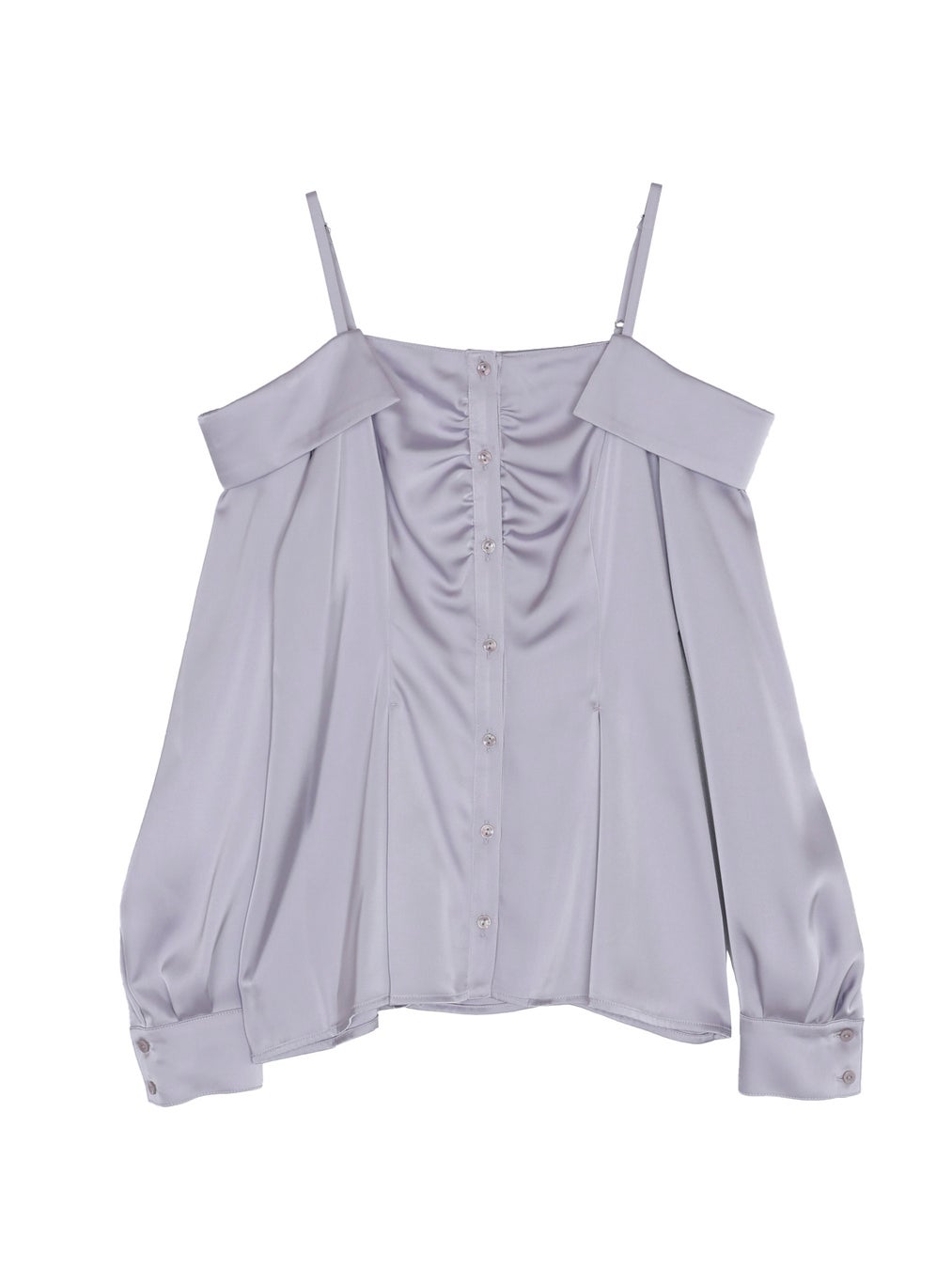 商品名:【久間田琳加コラボ】サテンオフショルシャツ
