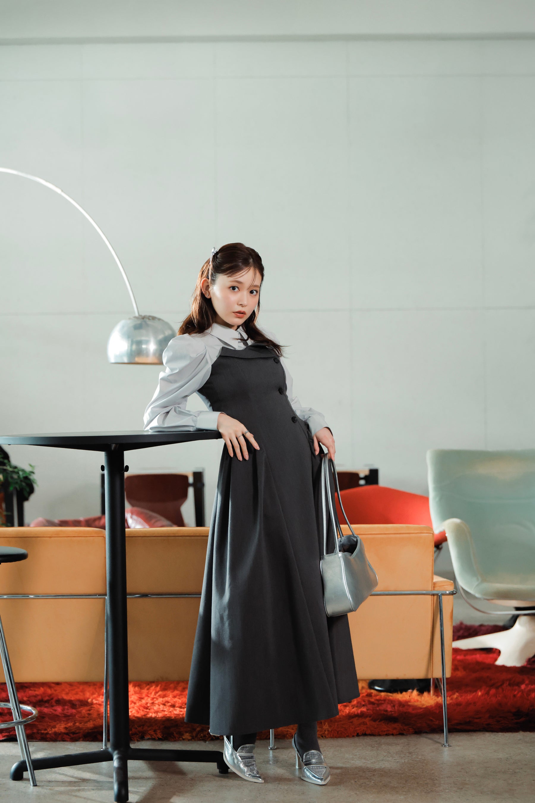 顔まわりを華やかに見せる大きめの襟がポイントで、写真映えも抜群。