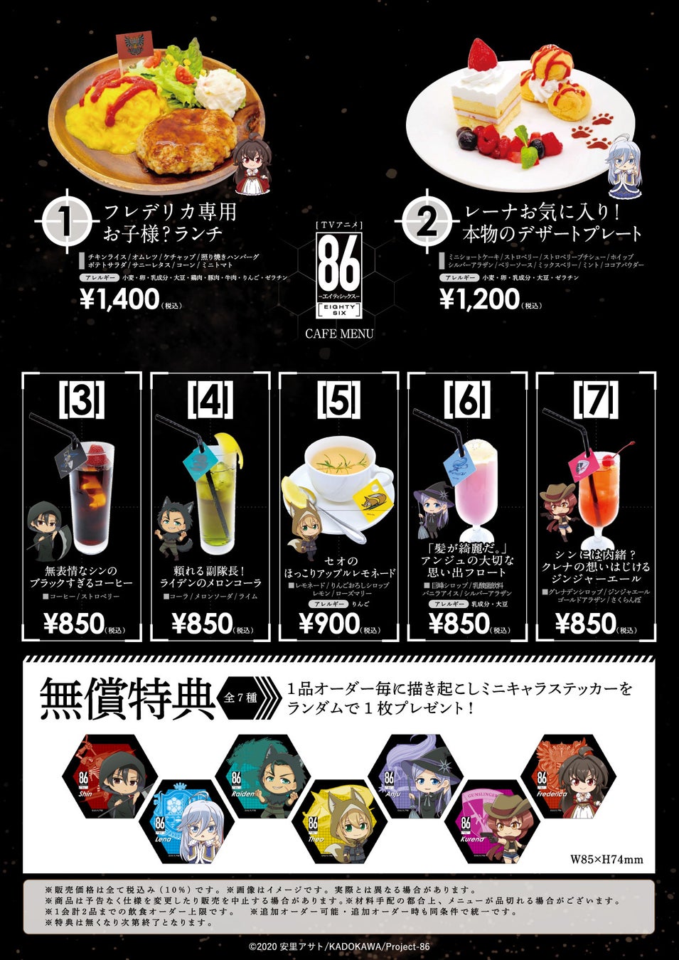「AMOCAFE池袋店」と「マンガ展 池袋」の【TVアニメ「86―エイティシックス―」コラボカフェ】イベント期間中のレシート2,000円(税込)毎にそれぞれの飲食特典をプレゼント!